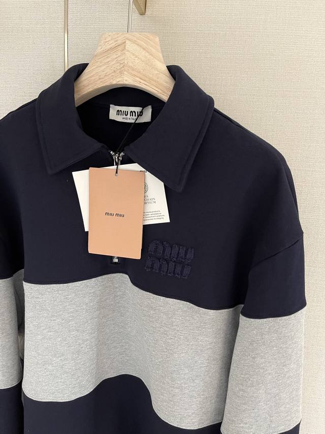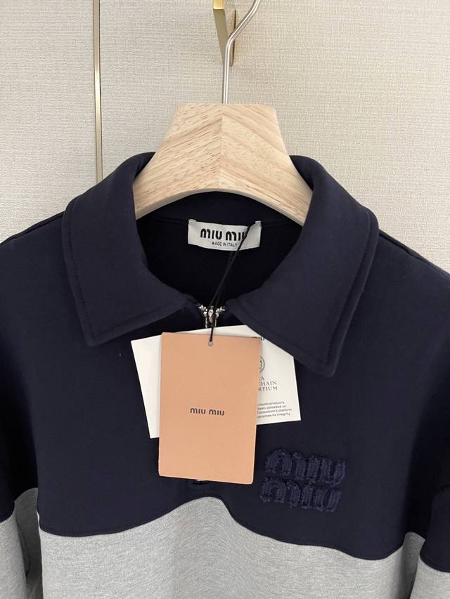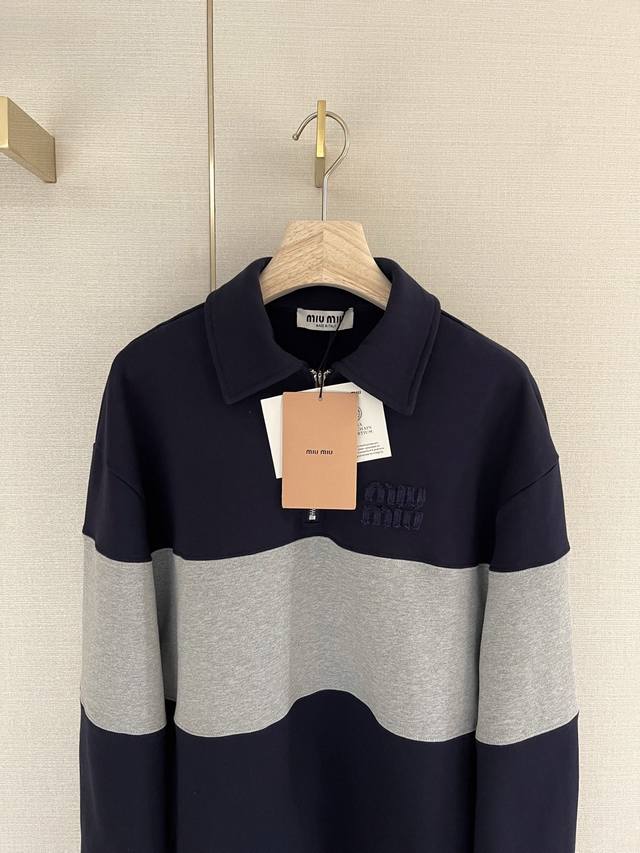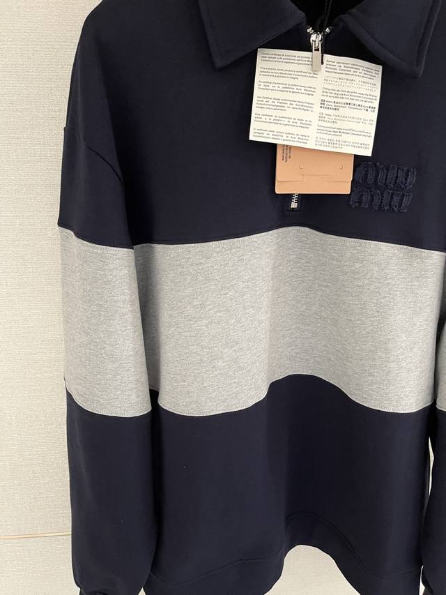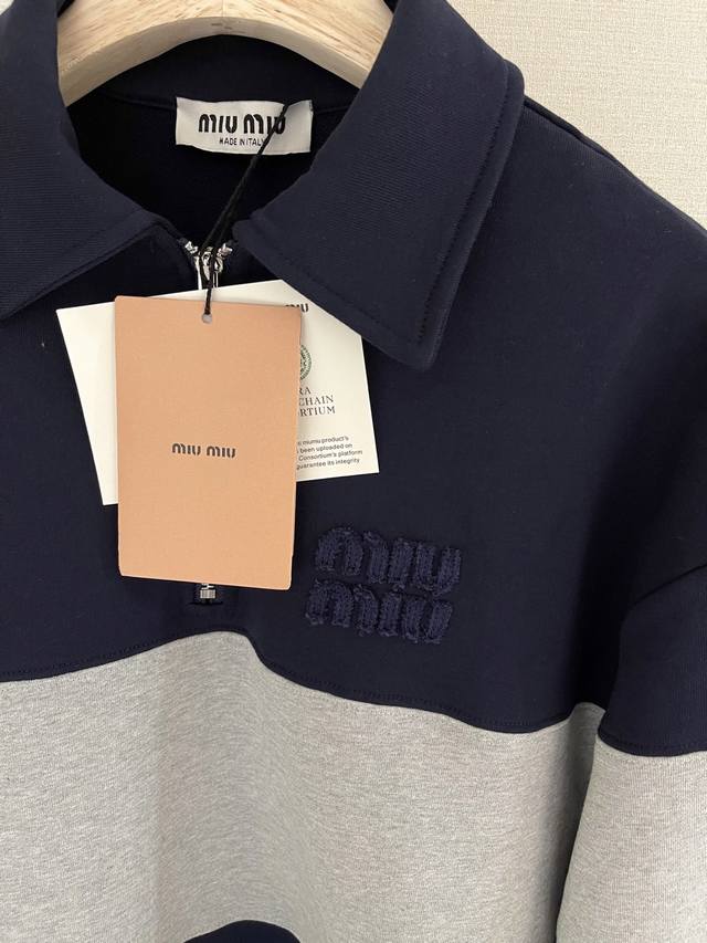 miu 25 early autumn new product contrast stitching half zip lapel sweatshirt