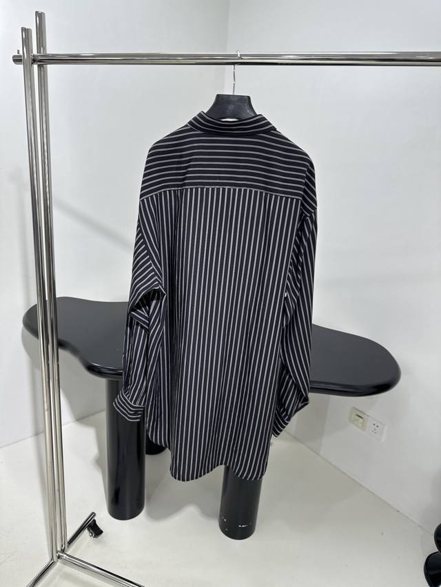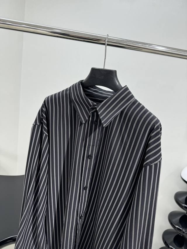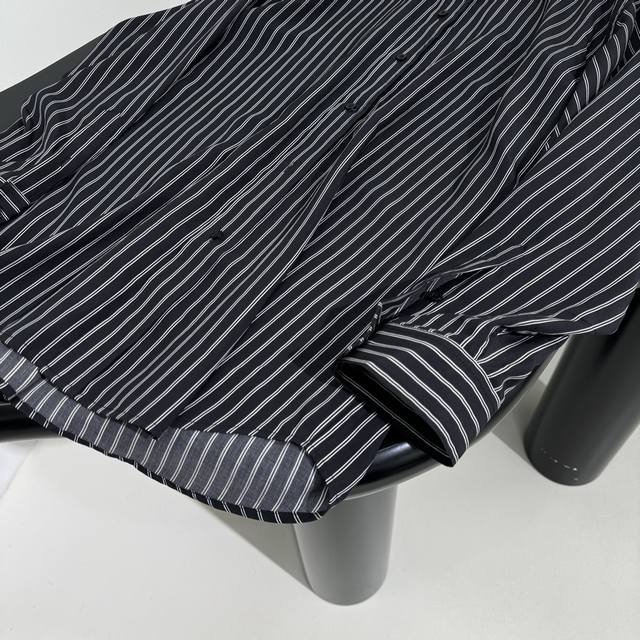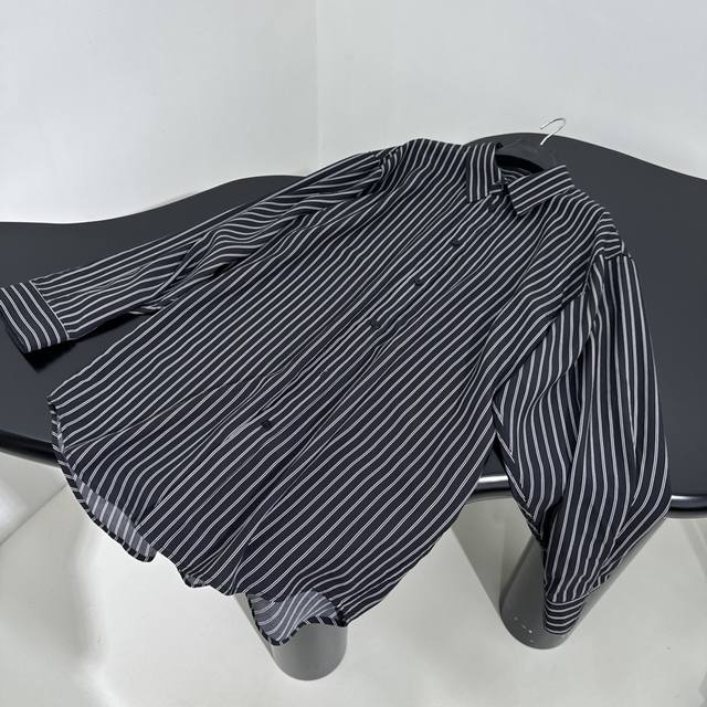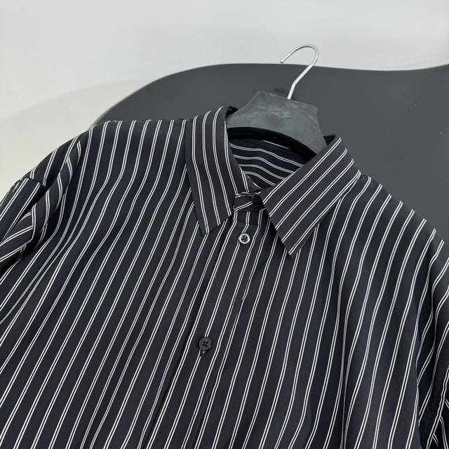 New Cotton Striped Shirt DDD Soft cotton fabric, custom plaid fabric DDD Curved hem, dropped shoulders DDD Button closure DDD Unisex DDD The Garde-Robe collection encompasses a variety of wardrobe essentials, with clean lines and luxurious fabrics complementing each other. Without any brand logos, it uses minimalist construction techniques to highlight the brand's striking silhouette and exquisite tailoring DDD : Black stripes DDD : DDD