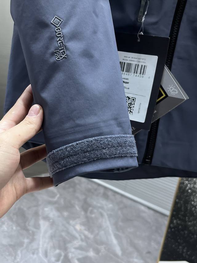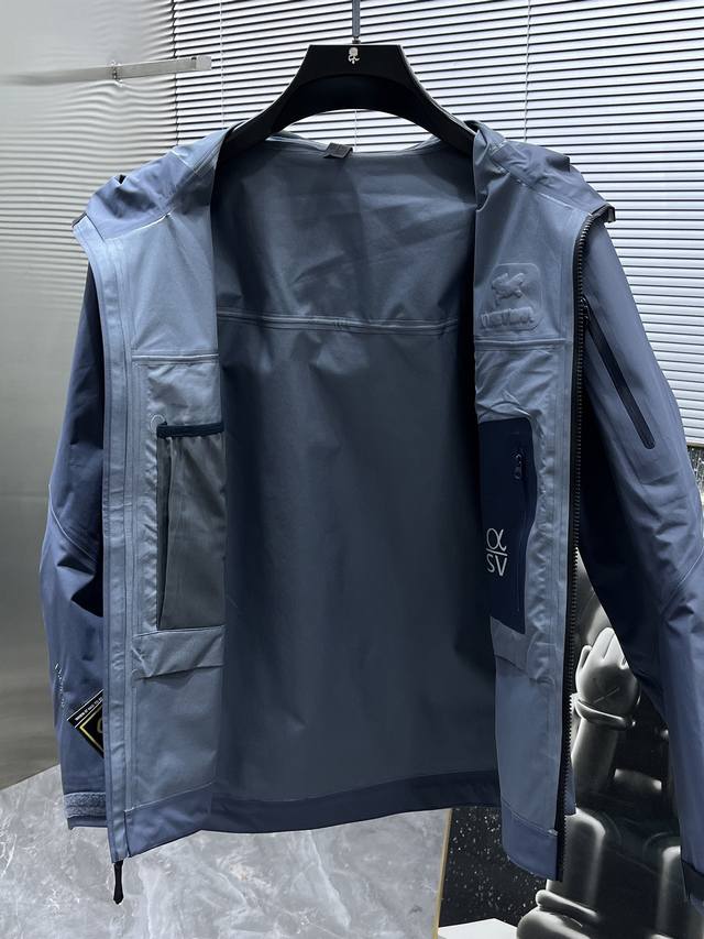 Arcteryx Alpha Series SV, seventh-generation hardshell jacket, top-tier, fully rubberized version. 7th-generation Gore-Tex pro embroidered logo, casual sports hooded zippered hardshell jacket.