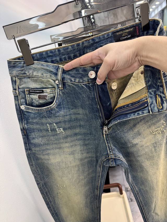Dg Dolce & Gabbana & 25 Limited Edition Autumn/Winter New Arrival Retro Washed Jeans Luxury 25 SS Official Store Price 9000 RMB New Hot Selling Original Replica Dg Leather Label Highly Recommended Complex Craftsmanship + Washing Export Quality Details in Place Trendy Colors Won't Fade Luxury Details Hardware Accessories All Satisfying Elastic Slim Fit Straight Leg Pants Sizes: 29-38 Available, 35 Not Available, 37 DDD