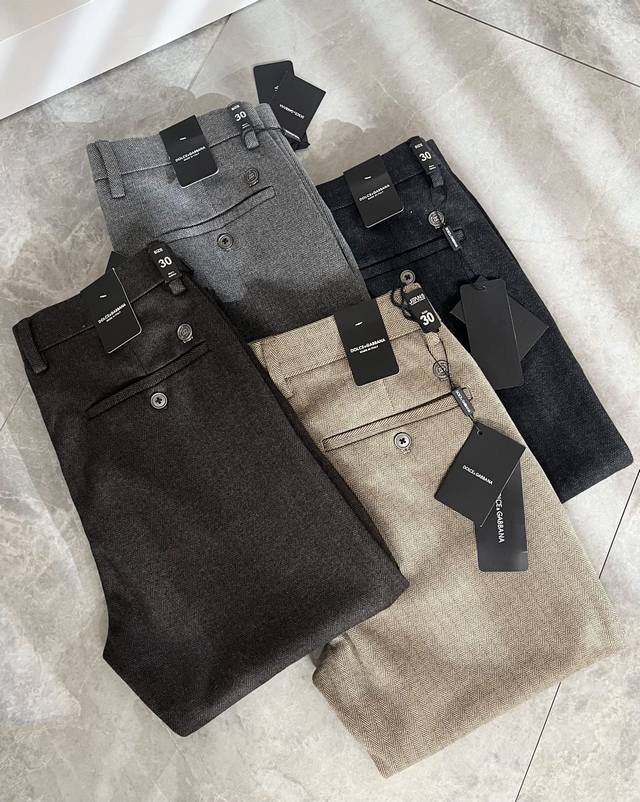 Dolce & Gabba*A 2025 Autumn/Winter New Cashmere Versatile Casual Trousers for Men! A classic business casual basic trouser for men! Rarely available through trading company channels, sold ahead of the official website! A pair of trousers with both excellent design and practicality, combining fashion sense with undeniable status as one of Dolce & Gabba's best items this year! Possessing excellent breathability, moisture-wicking, and quick-drying properties, these trousers have a cooling effect, making them an absolute must-have for your summer wardrobe. You'll definitely want to buy them again and again once you see them! The basic suit trouser cut and perfect tailoring are extremely forgiving of different body types, effectively flattering the leg shape and visually lengthening and straightening the legs, significantly enhancing your appearance and presence! Custom-supplied YKK metal zippers and original logo hardware embellishments! The iconic classic logo badge on the back panel speaks volumes about its recognizability and luxurious feel, exuding understated sophistication! A versatile and classic piece, easily adaptable to both business and casual occasions