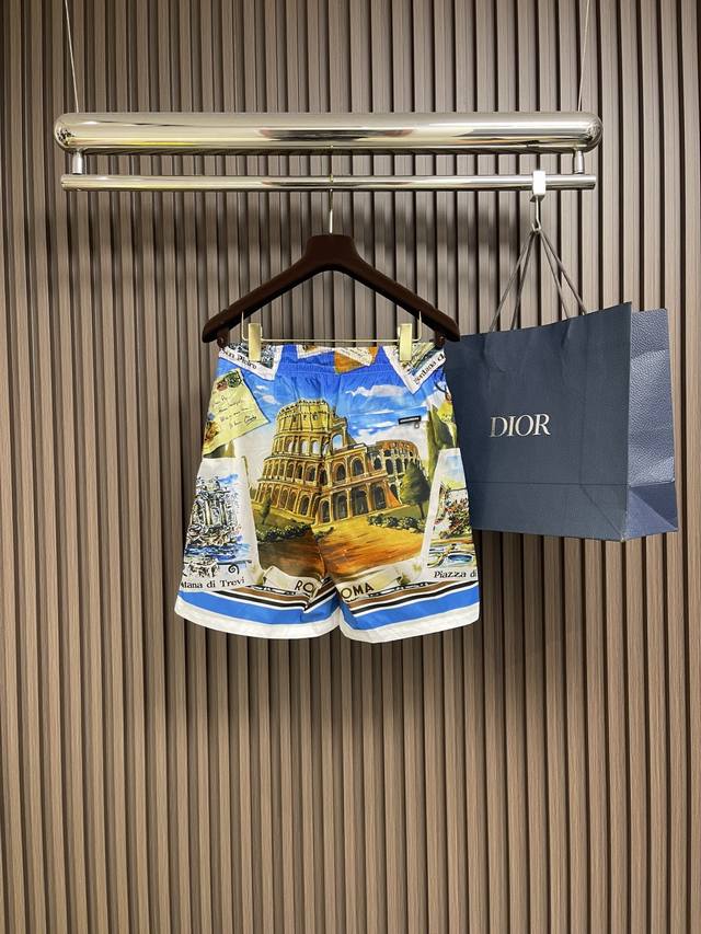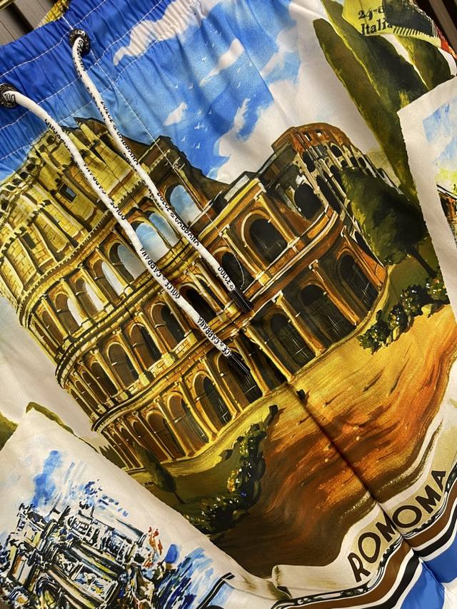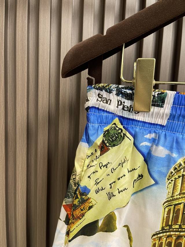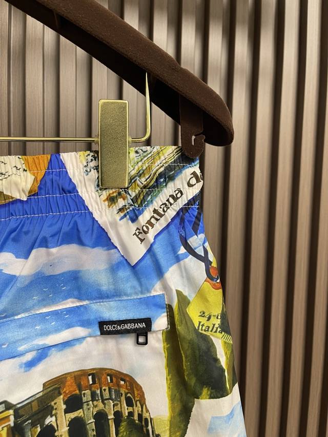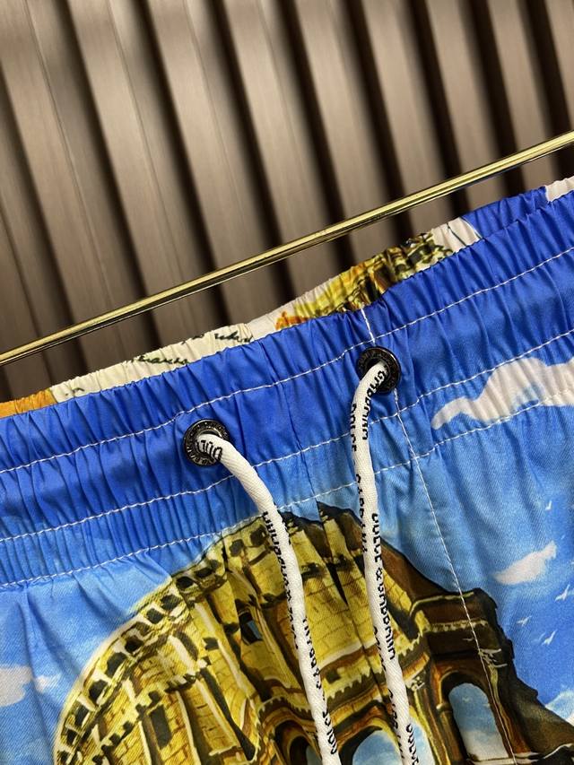 Dolcegabbana DG 2025Ss beach shorts with a castle illustration, new quick-dryin