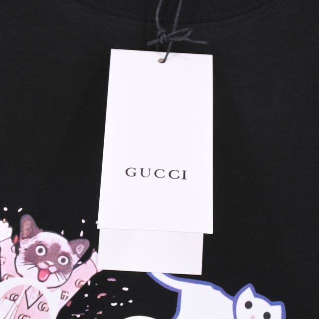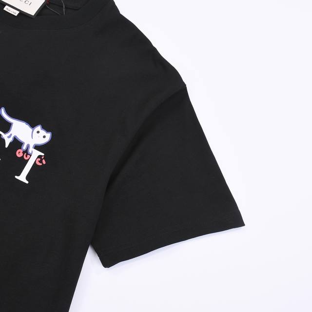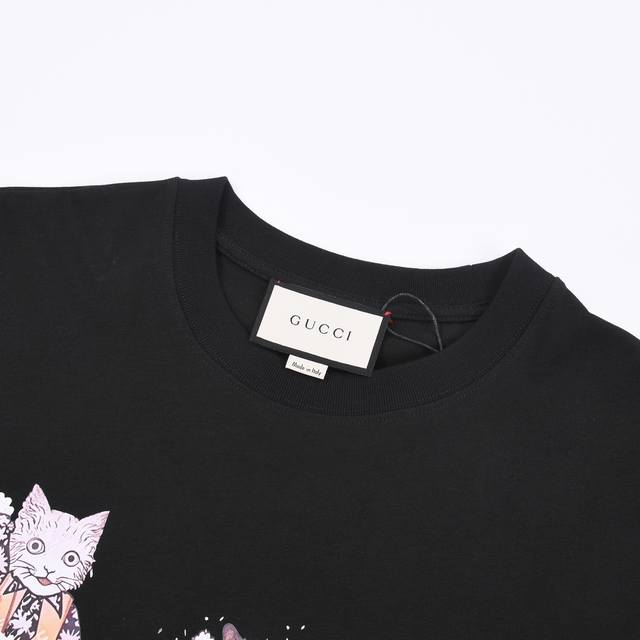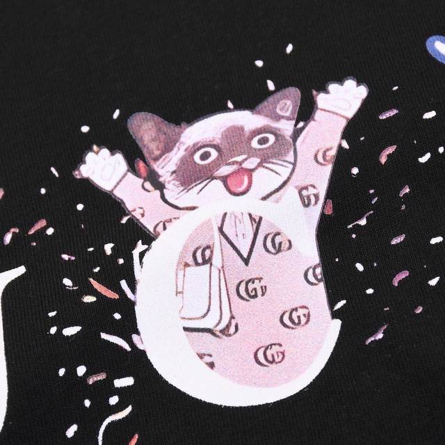 Gu kitten print, the latest short sleeves of Gucci 2025 spring and summer!!