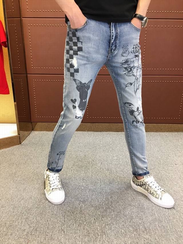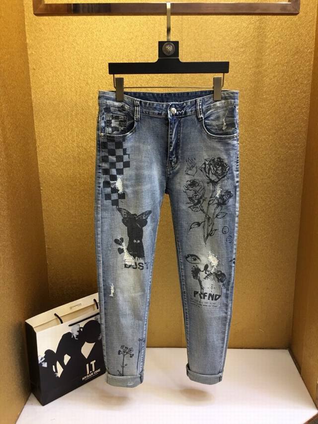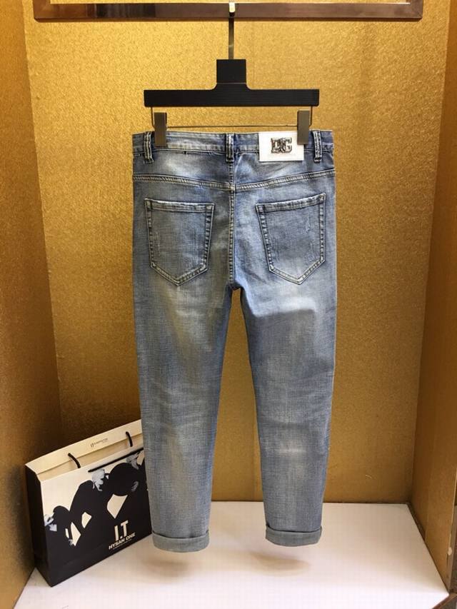 Dolce & Gabbana: Spring/Summer New Arrival Denim, available simultaneously in stores and online. High-quality, top-tier quality, classic denim! Features a direct-print rose design on the pants, stylish and a must-have for fashionable men! 1:1 replica, flawless, and looks amazing on! Sizes: 28-36. Please provide your waist measurement when ordering.