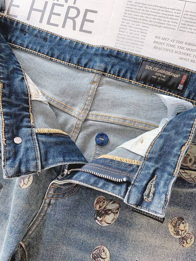Dolc&Gabbana jeans, embodying the brand's aesthetic, prioritize fabric and quality. Continuing its signature design essence, iconic elements are seamlessly integrated. Crafted from premium denim fabric with a clear, three-dimensional twill texture, it exudes a high-end, sophisticated feel. Custom-made hardware completes the look. Effortlessly achieve a high-end, luxurious style with impeccable attention to detail! A must-have for any man's wardrobe, effortlessly creating a stylish street look! Size: 29-38