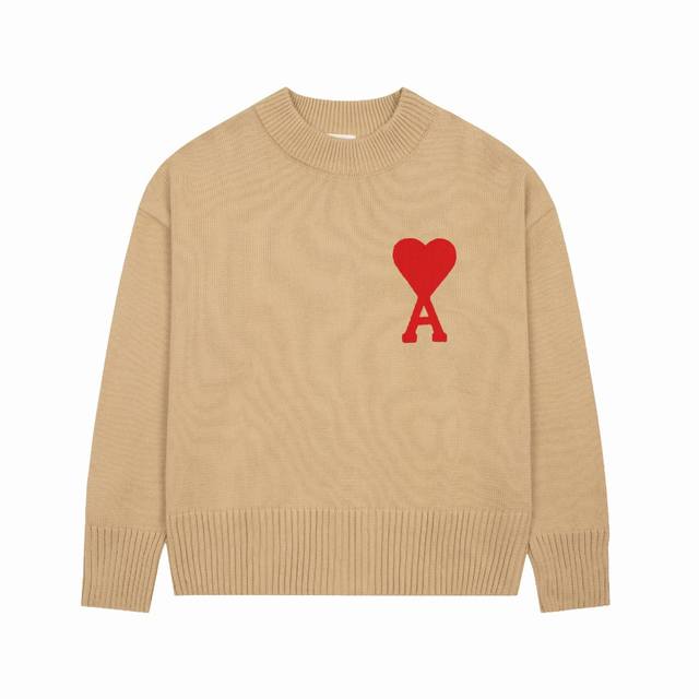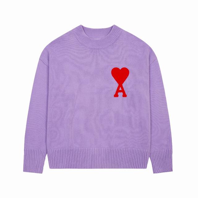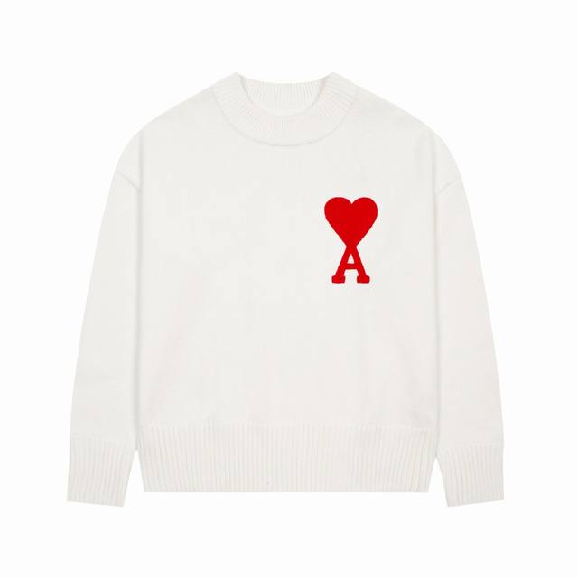 Ami Love Classic Basic Embroidery Big Love Round Neck Pullover Sweater