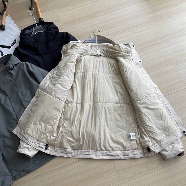 Main Image: Arc'teryx Therme Insulated Jacket (Tricolor Style, Couple Style) - Windproof, Waterproof, and Warm. This jacket is currently out of stock in stores. Designed for mountain living, this jacket combines versatile mountain style with lightweight warmth without being bulky. The hood is easily adjustable with a simple pull for enhanced protection. It doesn't obstruct vision, and the intelligent pocket system provides ample storage space. Its design ensures freedom of movement and allows for layering with other warmer layers. The body of this garment is made of 40D Gore-Tex-Bluesign certified material with Tricot lining technology, solution-dyed recycled nylon, and treated with a fluorine-free, long-lasting waterproof finish. Features: Waterproof, windproof, breathable, durable, and warm. Colors: Black, Elegant Brown, Retro Green. Sizes: S-XL. S: Length 70cm, Chest 115cm, Shoulder 49cm, Sleeve 65cm. M: Length 72cm, Chest 120cm, Shoulder 51cm, Sleeve 66cm. L: Length 74cm, Chest 125cm, Shoulder 53cm, Sleeve 67cm. XL: Length 76cm, Chest 130cm, Shoulder 55cm, Sleeve 68cm.