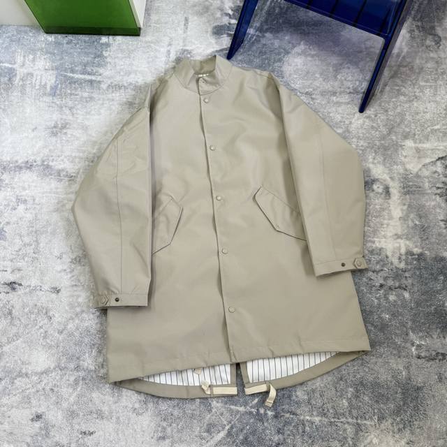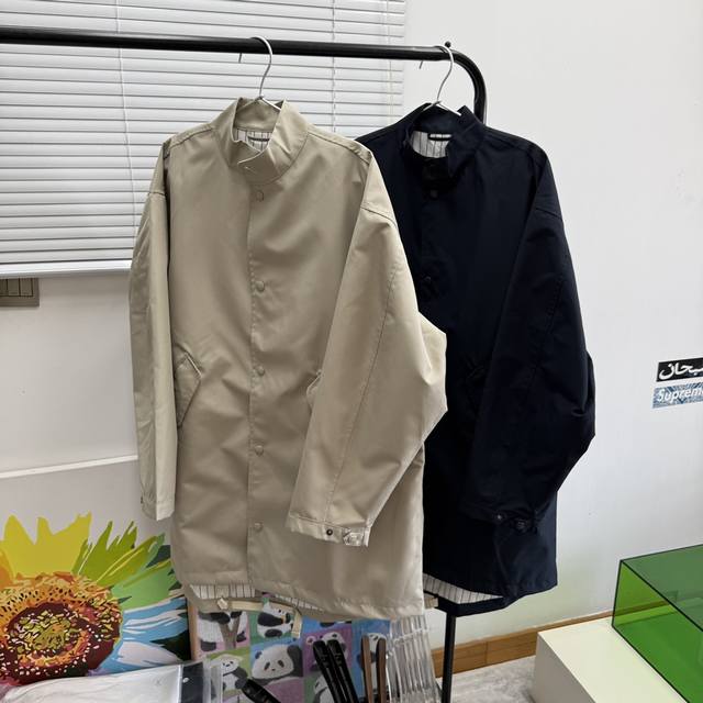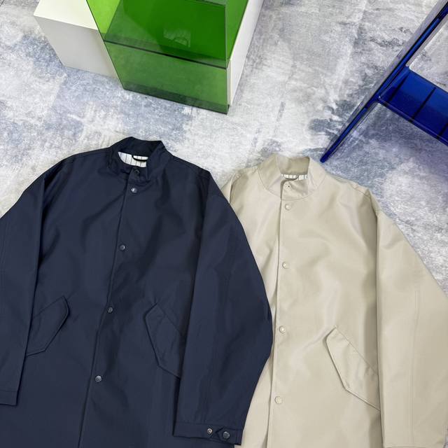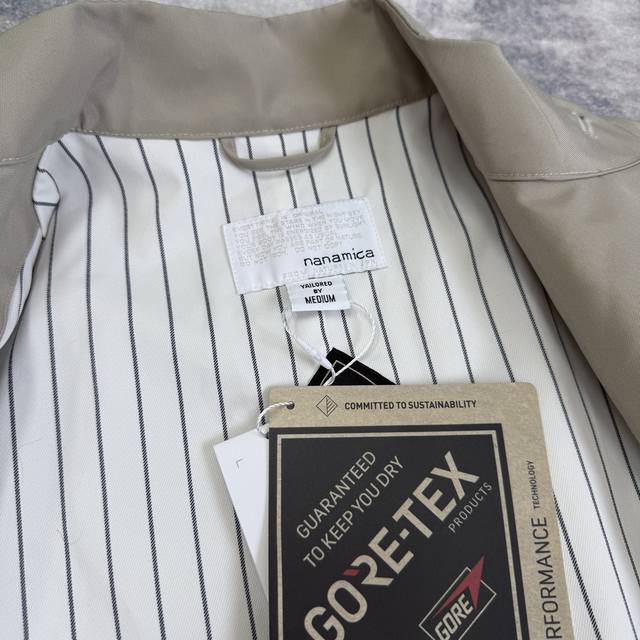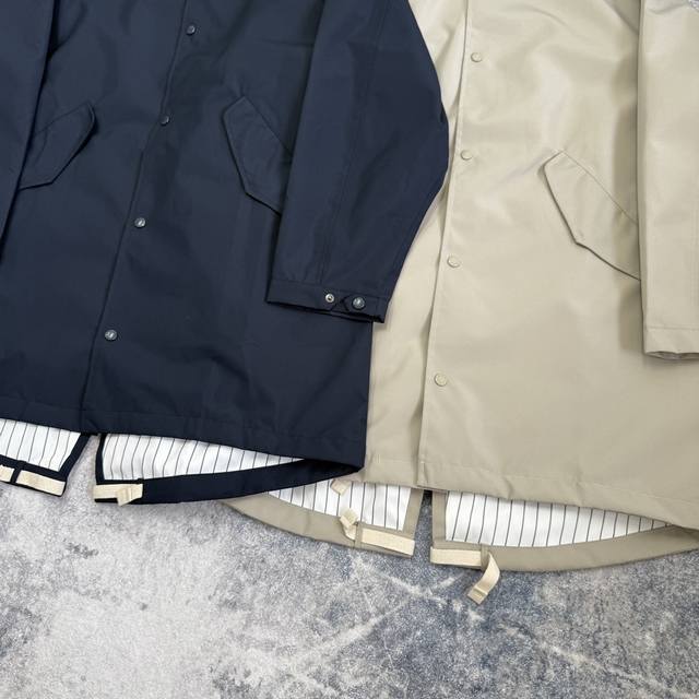 Nanamica 2L stand-up collar, long fishtail windbreaker. Made of double-layer Goretex fabric. Waterproof and windproof. Fully taped seams on the lining . Available in 2 colors and 3 sizes. Suitable for heights from 165cm to 185cm.