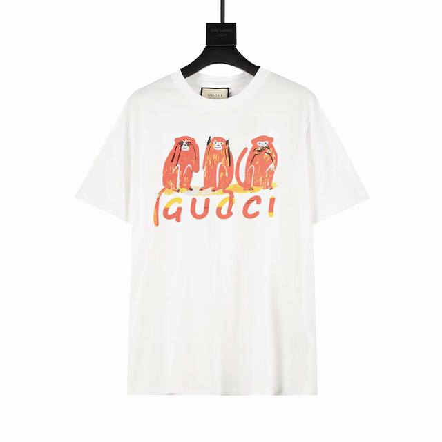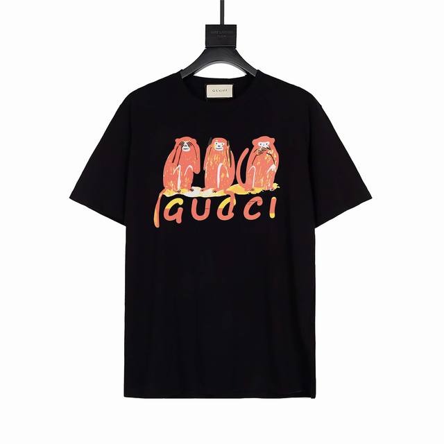 Gducci three monkeys printed short sleeves made of pure cotton fabric, the fabric feels solid, very classy and soft and delicate, full of three-dimensional gelatin printing details, very delicate and tasteful, loose Os version cutting, in line with the current trend aesthetics.
