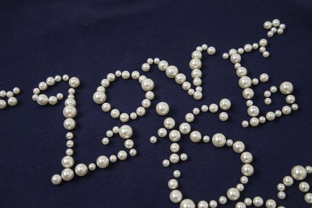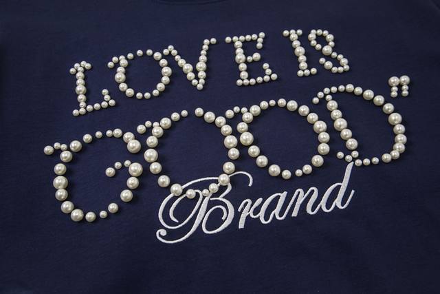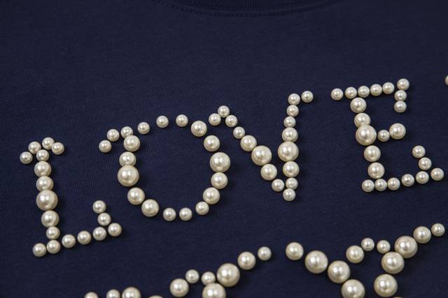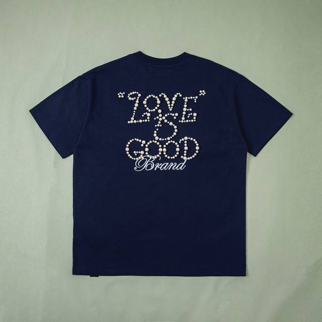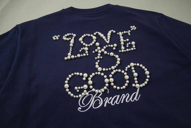 Goodbrand Loveisgood multi-color pearl slogan fashion high-end American loose silhouette T-shirt pure cotton fabric bubble bead embroidery craft full set of accessories details Yb built-in laundry bag restore 1:1 men and women the same style do not machine wash
