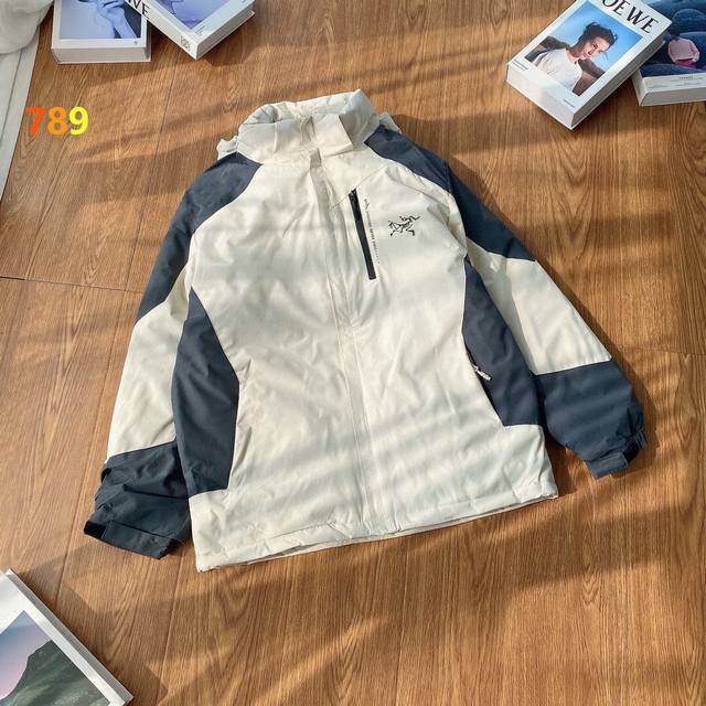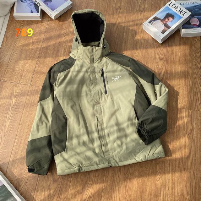 Same style as in department stores Arc'teryx Ralle Insulated Tri-color Hooded Multi-functional Waterproof Windproof Warm Cotton Jacket. This Ralle jacket is designed for mountain living, combining versatile alpine style with eco-friendly materials. Recycled Corelof synthetic down provides lightweight warmth without being bulky. The hood can be quickly adjusted with a simple pull for comprehensive protection without obstructing vision. The intelligent pocket system provides ample storage space, while its design ensures freedom of movement and allows for layering with other warmer layers. The jacket body uses 40D Gore-Tex-Bluesign certified material with Tricot lining technology, solution-dyed recycled nylon, and is treated with a fluorine-free, long-lasting waterproof finish. Features: Waterproof, windproof, breathable, durable, warm. Colors: Black, Gray, Black, Green, Ivory. Size: See picture nine.