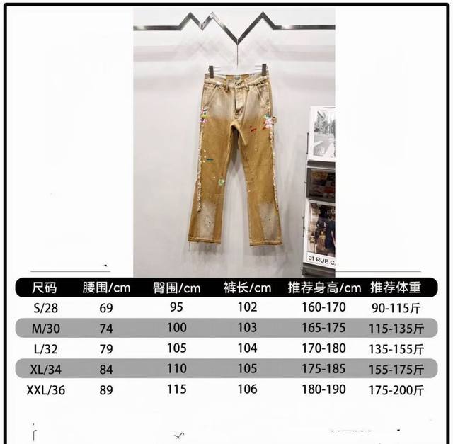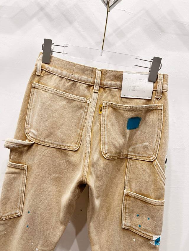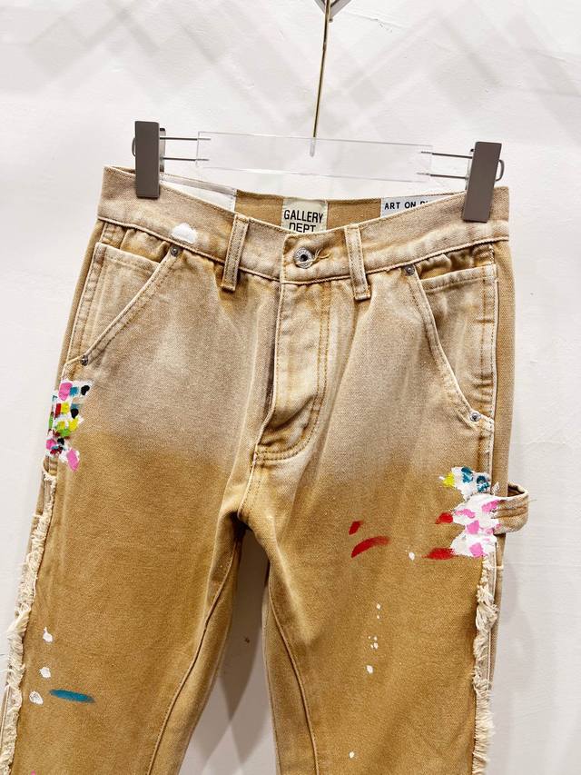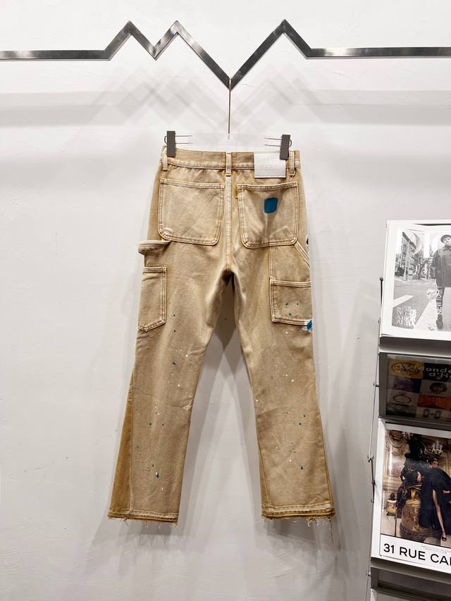 Gallery Dept American retro ink-splashed splicing micro-flared lumberjack overalls raw-edge jeans