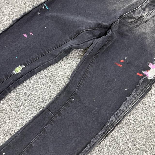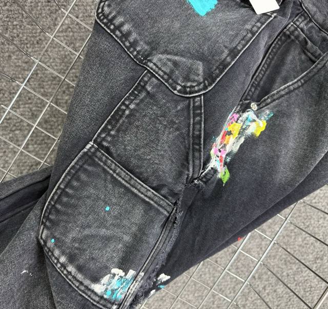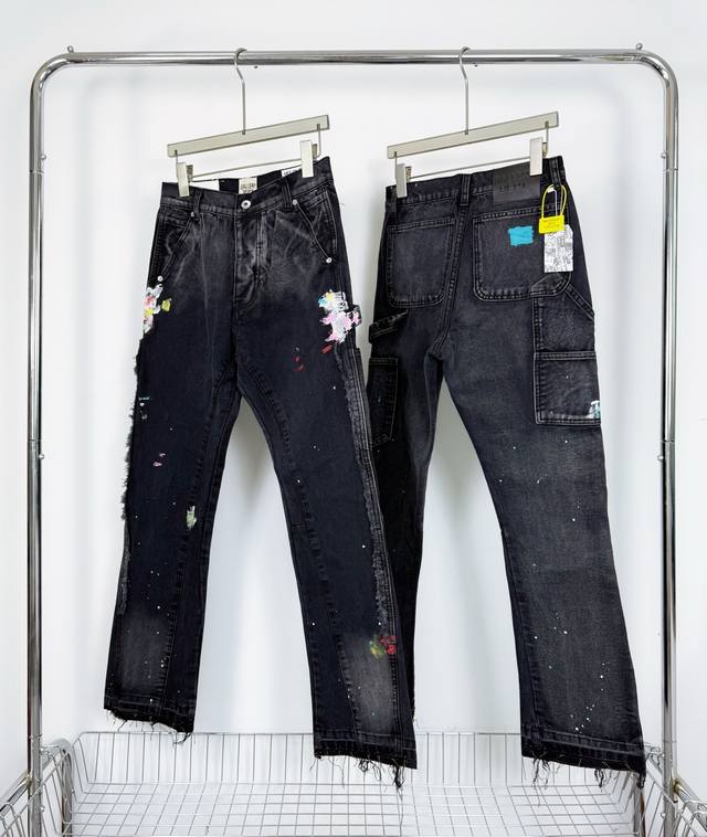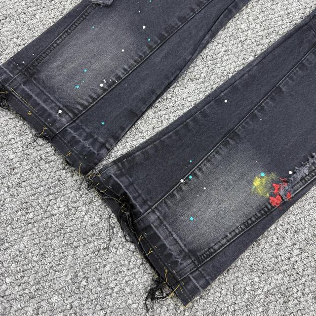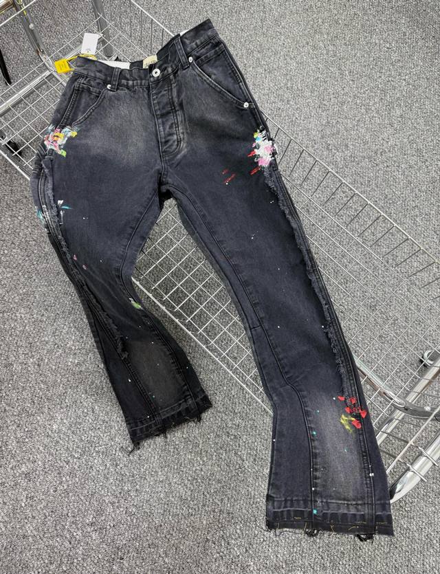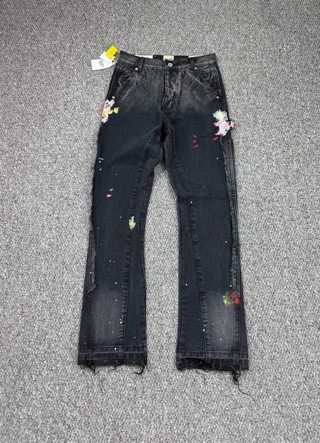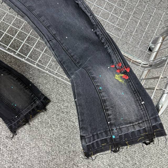 Gallery Dept. Vintage ink-splashed black and orange cross loose washed flared jeans