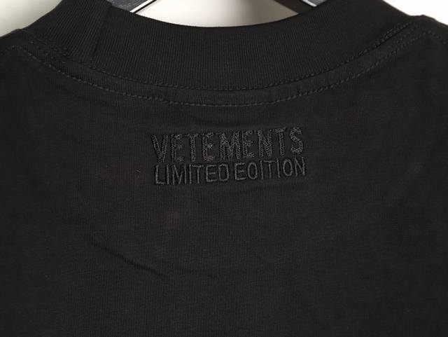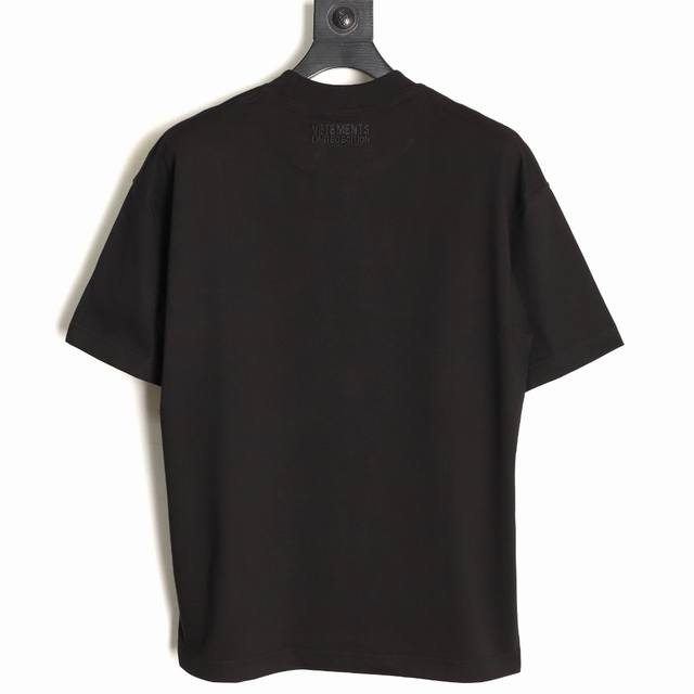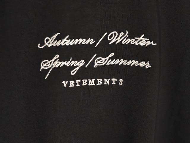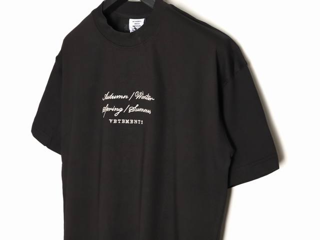 Vetements short-sleeved T-shirt with embroidered cursive slogan and logo.