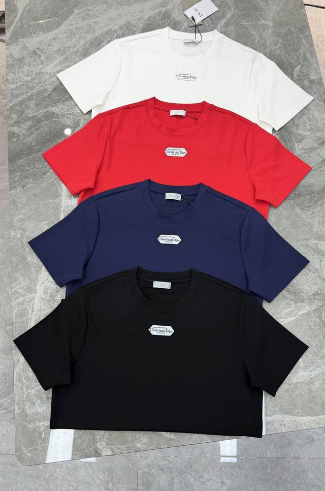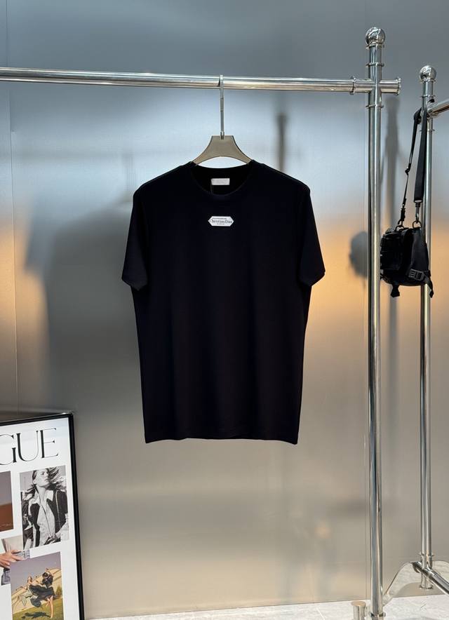 Dior 25S New Modal Short-Sleeve T-Shirt. A refreshed and upgraded versatile basic style, produced by a trading company! Made from premium organic G Modal cotton, breathable, comfortable, strong, and durable. Features the classic monogram logo on the chest with a blade design, showcasing a new micro-logo feature. A fitted cut to express urban style. Colors: Black, White, Dark Blue, Bright Red. Sizes: M-3XL, S and 4XL (custom sizes available). For someone 175cm tall and weighing 140kg, L is recommended.