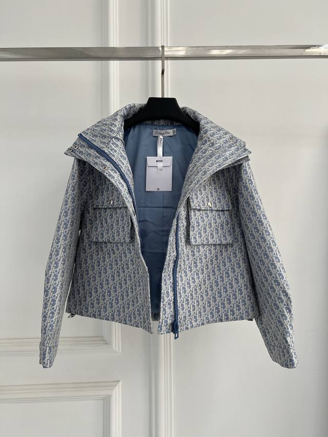 Dior 2025 Fall/Winter New Hooded Short Jacket, classic monogram jacquard fabric, drawstring hem, brand logo webbing on the back for a casual and trendy look, and a large chest pocket perfect for this season. A very stylish piece~ DDD The fabric is very crisp, it holds its shape well without slouching. DDD The workwear-style design is both cool and stylish, perfectly blending sporty and cool vibes. DDD I call it the sexiest jacket. DDD Sml DDD