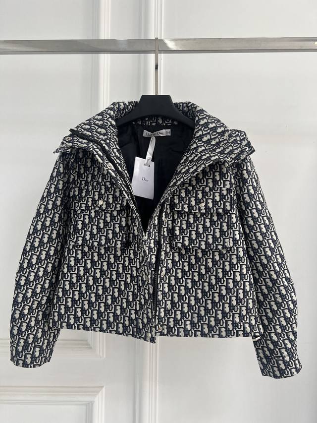 Dior 2025 Fall/Winter New Hooded Short Jacket, classic monogram jacquard fabric, drawstring hem, brand logo webbing on the back for a casual and trendy look, and a large chest pocket perfect for this season. A very stylish piece~ DDD The fabric is very crisp, it holds its shape well without slouching. DDD The workwear-style design is both cool and stylish, perfectly blending sporty and cool vibes. DDD I call it the sexiest jacket. DDD Sml DDD