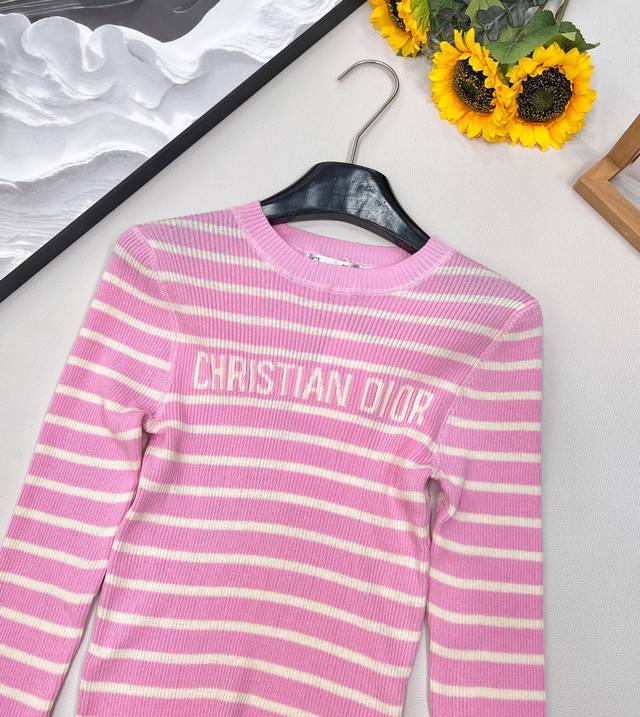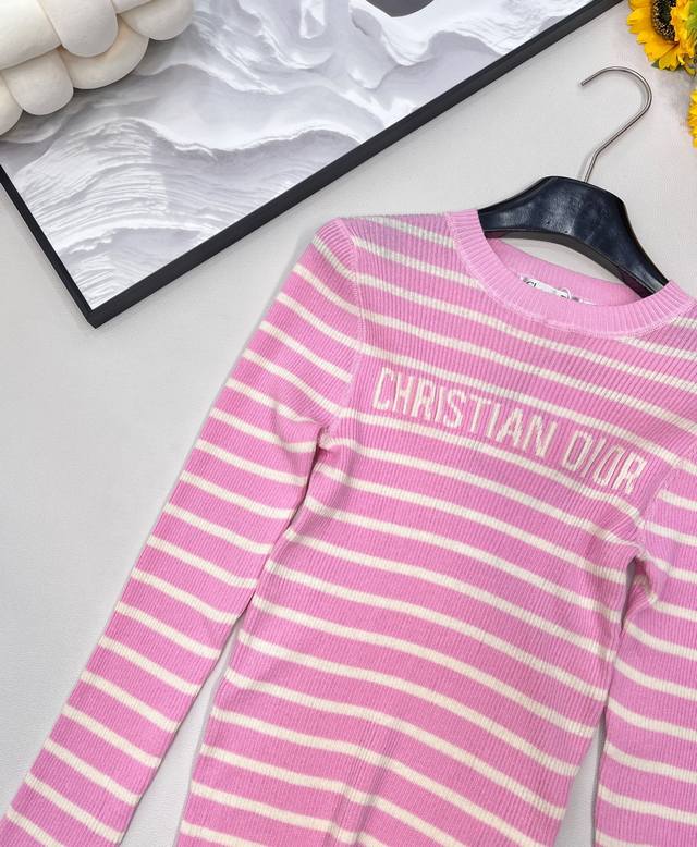 Dior contrast striped letter jacquard sweater Iconic design, instantly recogniza
