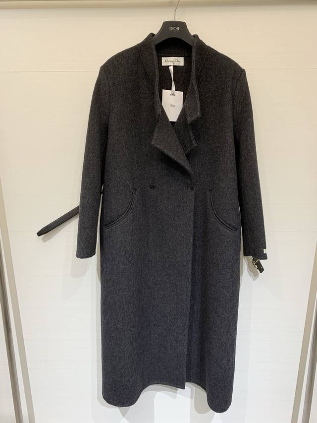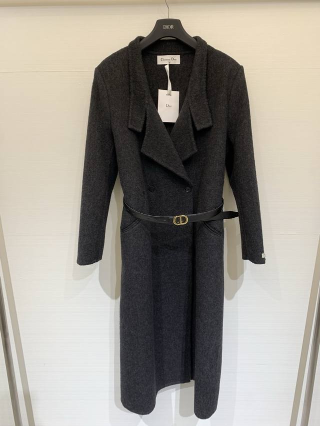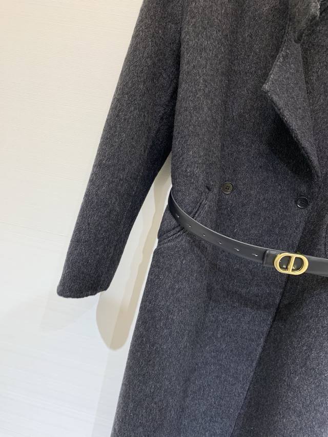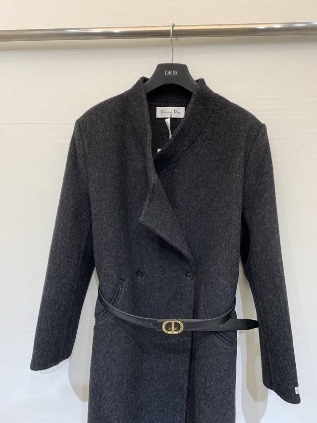Dior Fall/Winter 2025 New Black Cashmere Coat, custom-made 10% cashmere, 90% wool fabric, warm and perfect for autumn and winter. Double-breasted design with lapel and a CD metal belt accentuates elegant lines. The clean cut and perfect drape. Black is understated and versatile, suitable for both work and formal occasions. Pairs well with dress shoes or boots. Sizes: S, M, D, D
