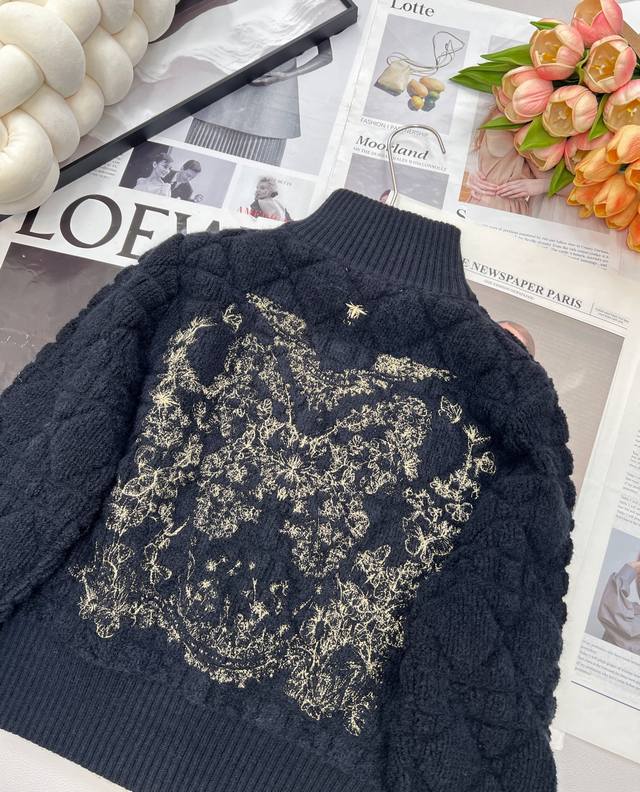 Dior Fall/Winter Diamond Quilted Stand Collar Butterfly Embroidery Zipper Wool Coat DDD Classic cannula stripe pattern, clear, dense, thick, loose silhouette, simple and comfortable classic style DDD This cardigan is adorned with the iconic oversized cannula pattern and is meticulously crafted from white wool and cashmere blend fabric. The zipper design DDD Paired with ribbed high collar, cuffs, and hem, it creates a sophisticated look. The stylish design can elevate any look this season. The simple cut DDD The cut is really flattering, and the thick fabric doesn't make you look bulky. Love it at first sight DDD The classic zipper design makes it easy to put on and take off. It's lightweight and highly practical as an inner layer or outerwear for everyday wear. DDD Very gentle and youthful, exuding a girlish elegance. The classic stand collar and short cut are easy for petite women to wear. A soft, sweet pink texture! DDD Sizes S, M, L DDD Code D. DDD