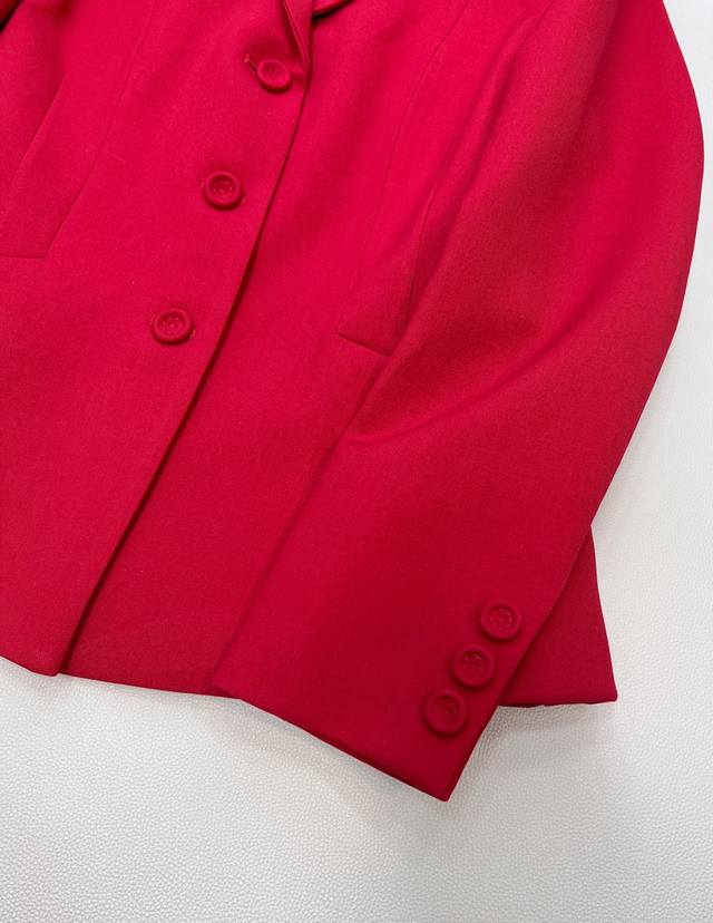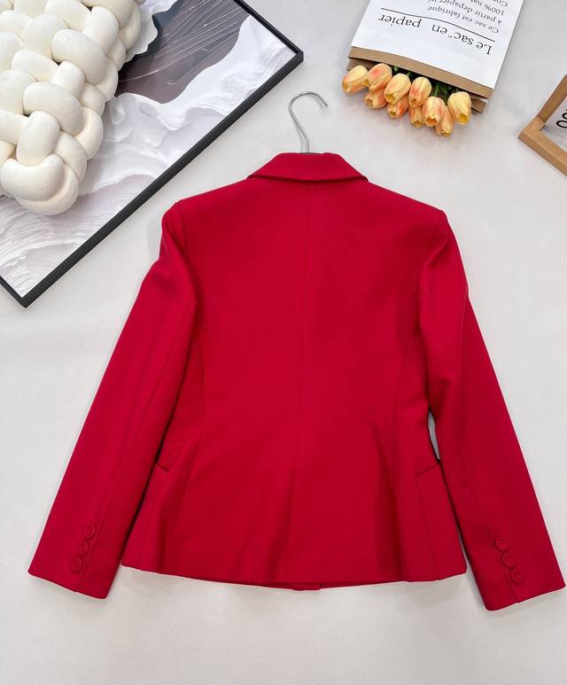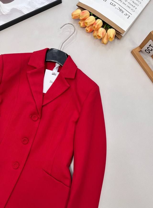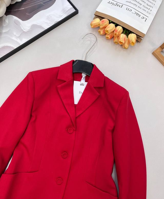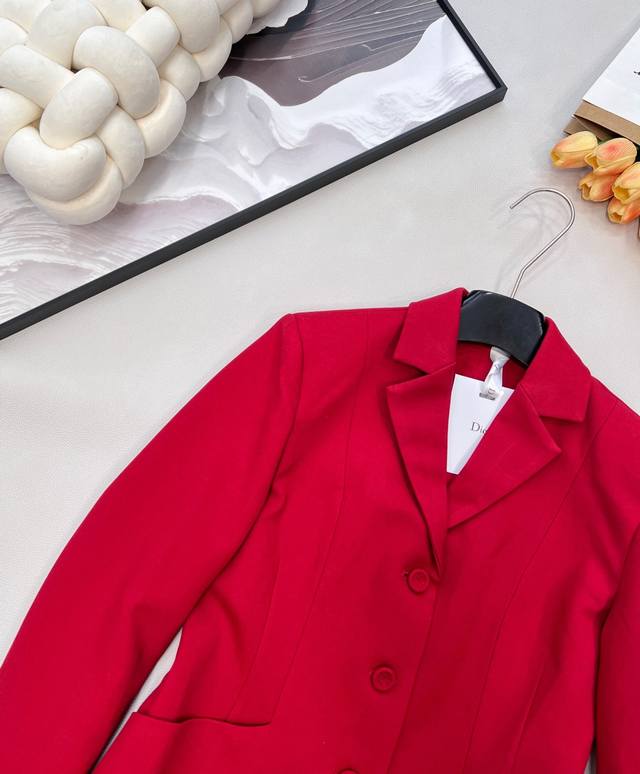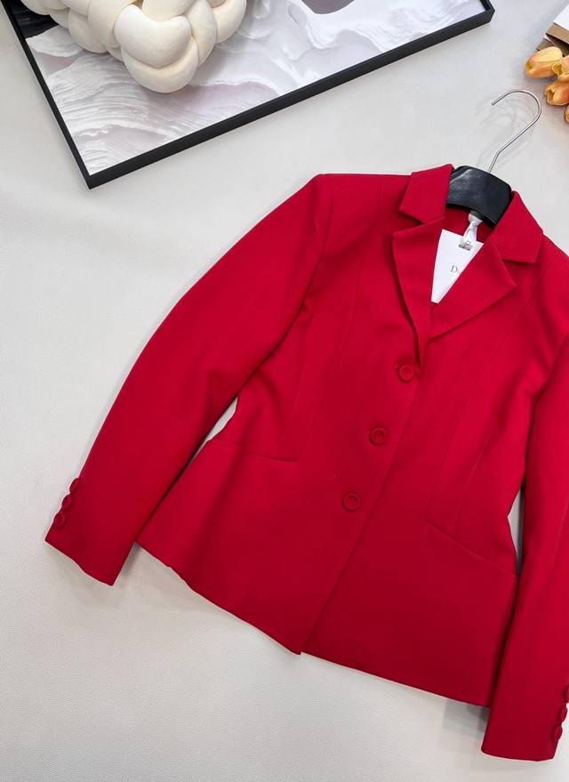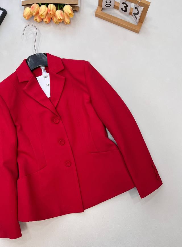 Dior New Year Red Lapel Suit Jacket. Custom-made imported Yb material, textured and glossy, comfortable against the skin, with a smooth drape. High-quality solid color with original custom-made buttons. Exquisite, elegant, and stylish. Great for everyday wear or commuting. Youthful and refined, details reflect quality. Mid-length silhouette, versatile and chic, showcasing a noble and elegant style. Custom-made fabrics and accessories, high-quality version. Large quantity available. Sizes S, M, L, Ddd. Code DDD D