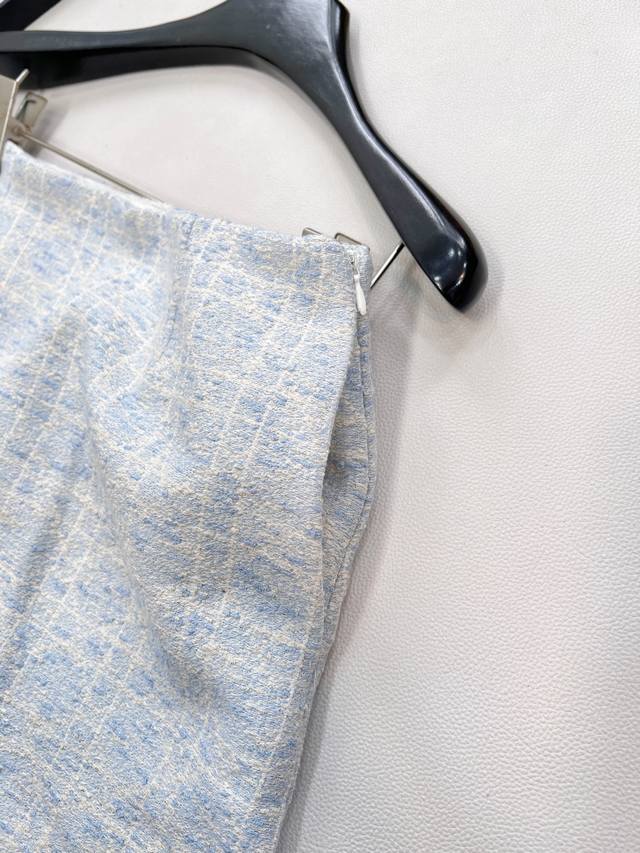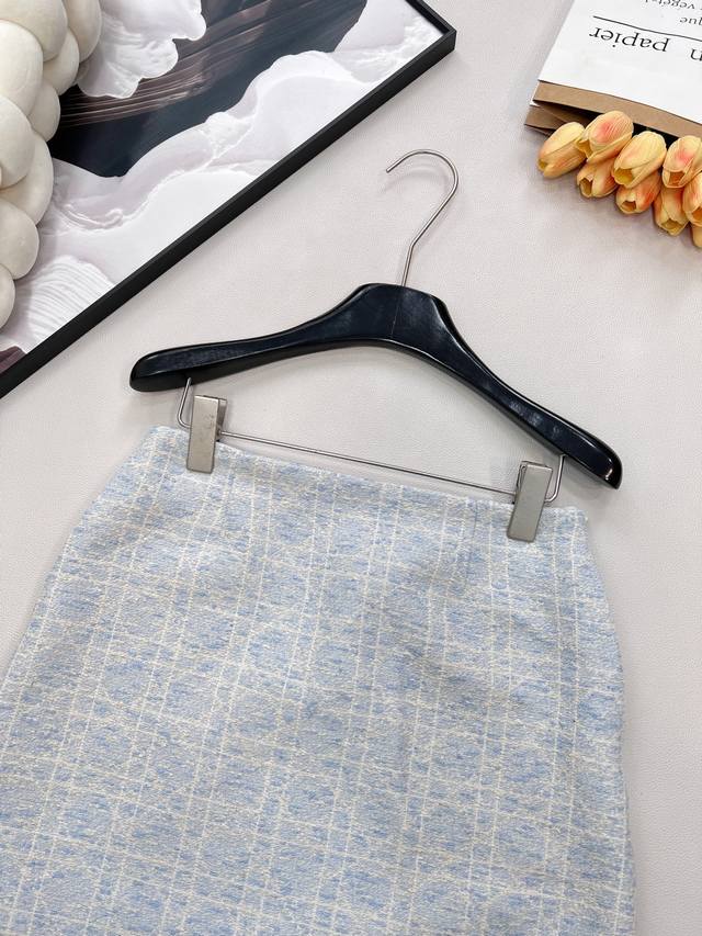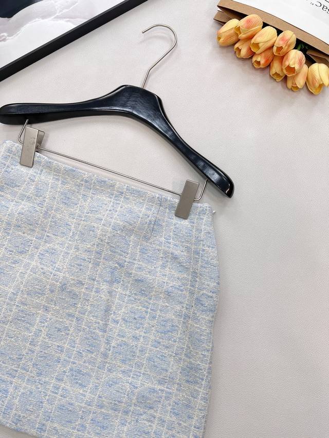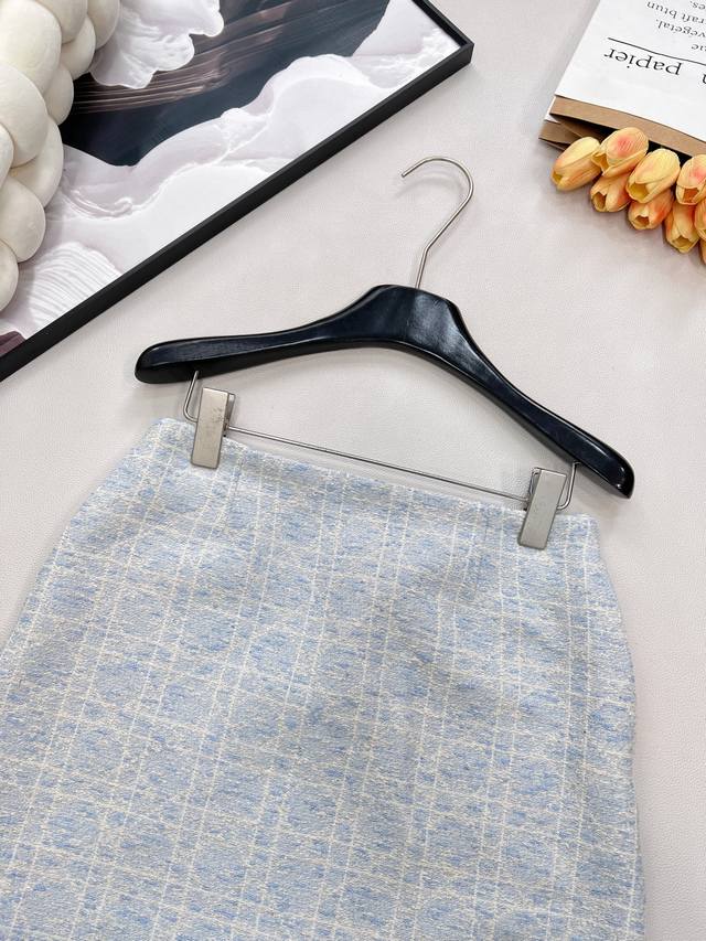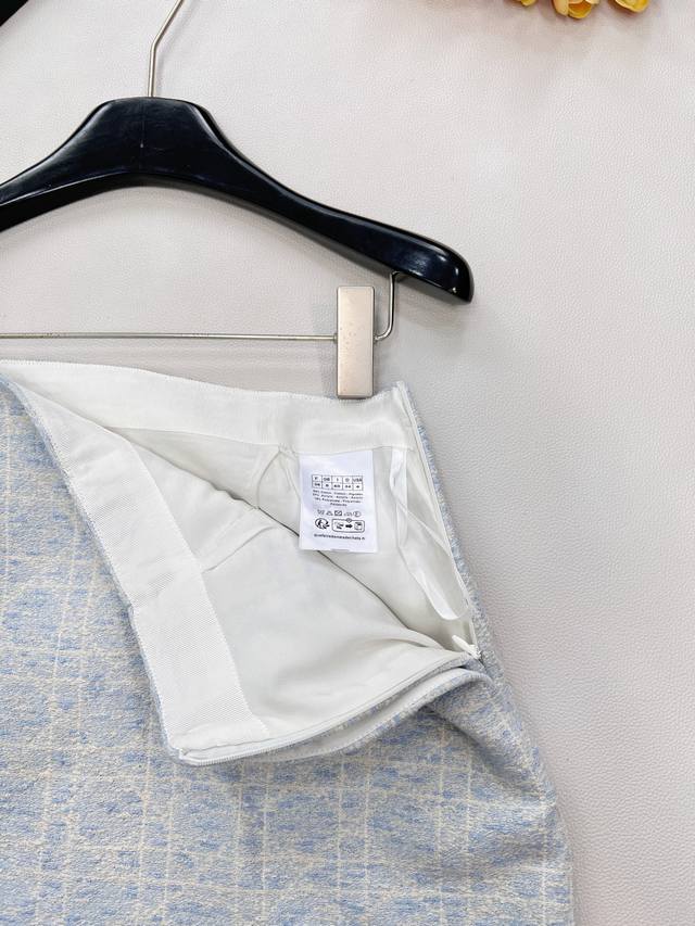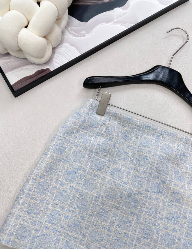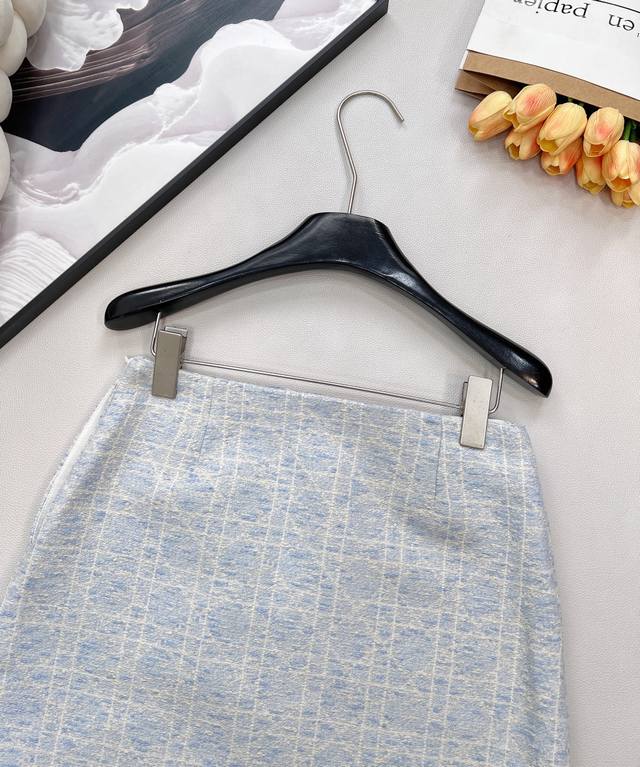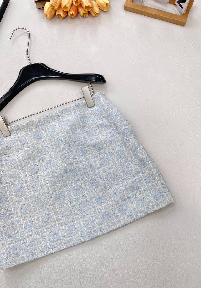 Dior Princess Diana Cannage Tweed Suit Skirt DDD Ice Blue Series DDD Classic Reimagined, Elegant Elevation DDD Inspiration Captures French Romance and Resort Style DDD Using Dior's iconic **Cannage** pattern as its brushstroke, DDD the tweed is woven into a deep blue hue, like the shimmering waves of the Mediterranean. DDD The tailored suit skirt outlines the silhouette of a modern woman, DDD every step is a poetic blend of strength and gentleness from Maria Dior's pen. DDD The cannage pattern recreates the timeless elegance of the Princess Diana era. The suit design of the jacket and skirt outlines a refined silhouette, every stitch telling the story of haute couture craftsmanship. DDD An ice blue love letter to the urban goddess DDD "Not all classics need to be silent DDD This time, let the cannage sing as you walk." All three tags are complete, bulk shipment available DDD Sizes S, M, L DDD Code D. DDD