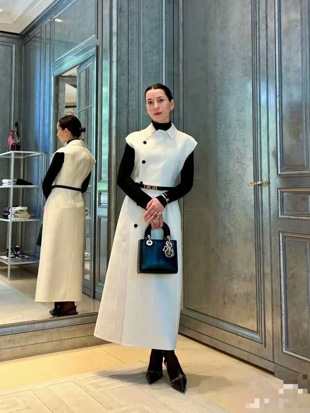 Dior same style dress Chinese elements temperament vest skirt worsted wool fabric crisp and stylish with a fabric belt Smlxl
