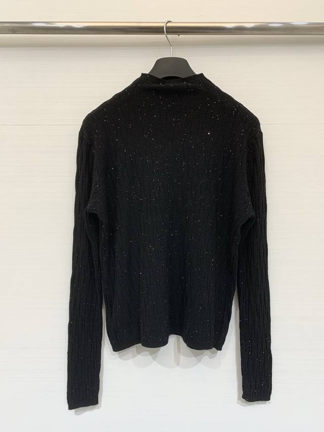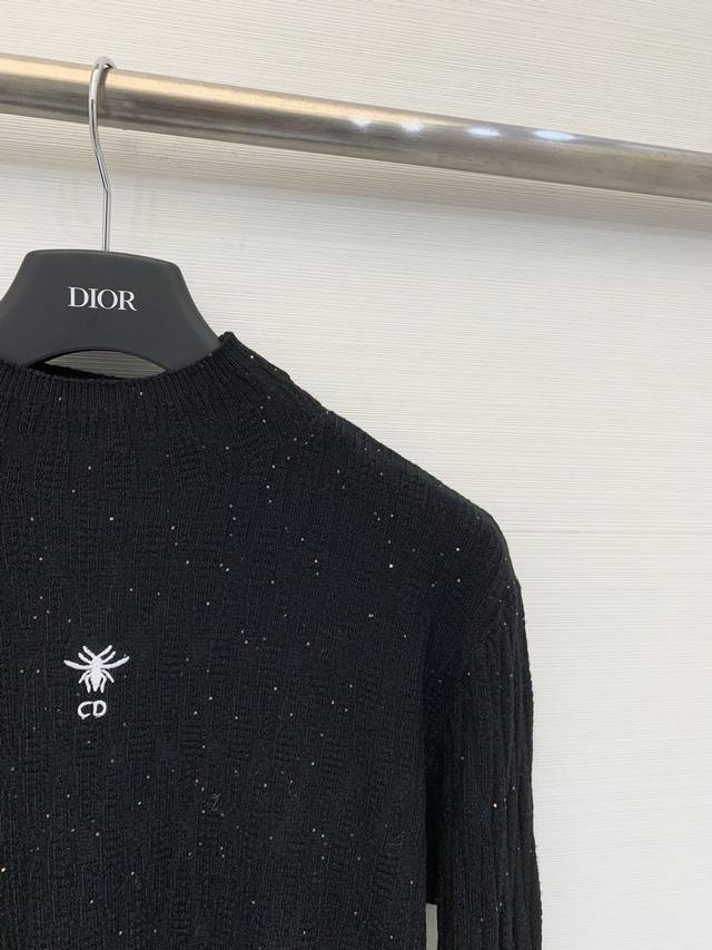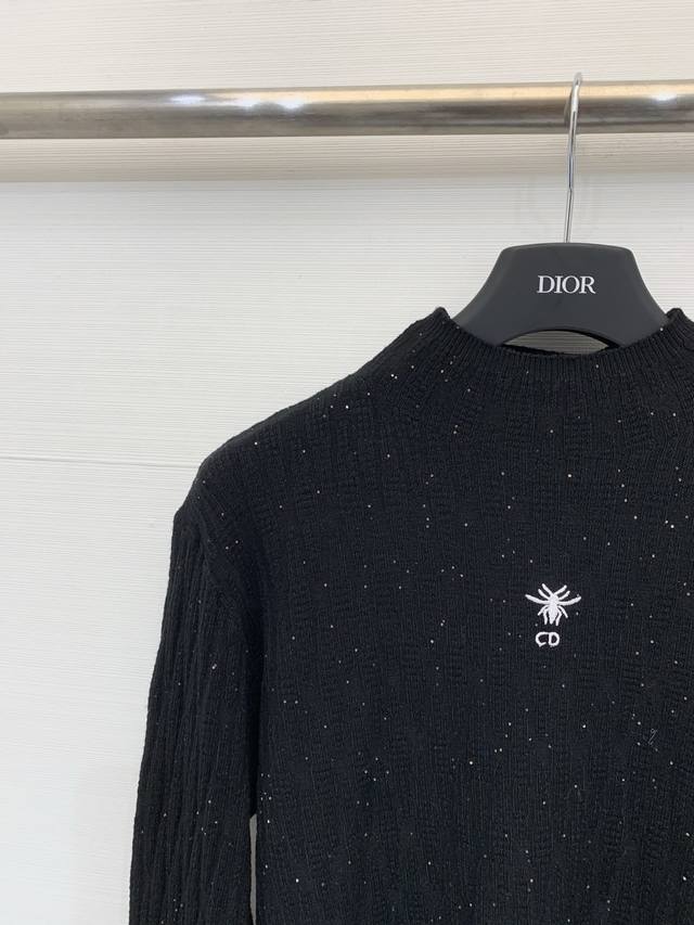 Dior Spring/Summer 2026 New Arrival: Embroidered Bee Logo High-Neck Knit Long-Sleeve Top with Scattered Sequins for a High-End Look. Available in S, M, L, DDD