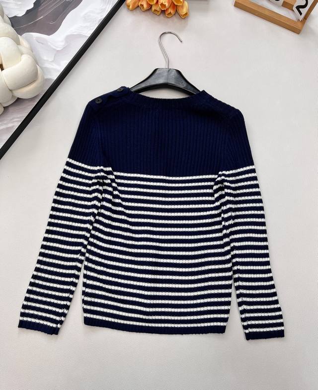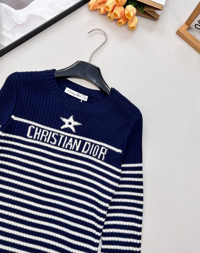 Dior striped five-pointed star wool knit sweater, adorned with embroidered five-pointed stars, stylish and youthful. The fabric is soft, lightweight, and comfortable, not stuffy at all, and the design is excellent. It looks great with any everyday outfit, and the classic striped design is timeless and exudes a youthful, girlish charm. A must-have basic for wealthy young ladies, a must-have for everyone, and very fashionable~ All tags are complete, available in three colors. Sizes S, M, L, D. Code D.