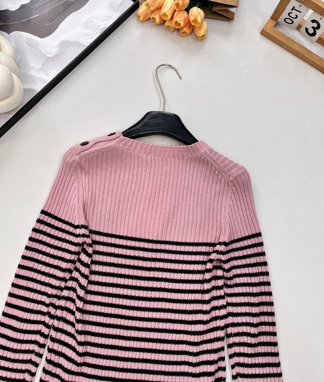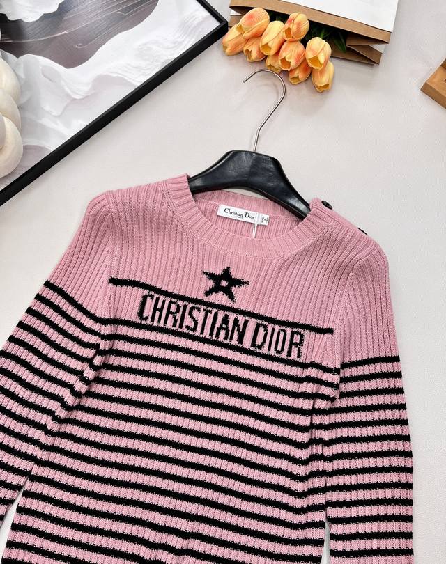Dior striped five-pointed star wool knit sweater, adorned with embroidered five-pointed stars, stylish and youthful. The fabric is soft, lightweight, and comfortable, not stuffy at all, and the design is excellent. It looks great with any everyday outfit, and the classic striped design is timeless and exudes a youthful, girlish charm. A must-have basic for wealthy young ladies, a must-have for everyone, and very fashionable~ All tags are complete, available in three colors. Sizes S, M, L, D. Code D.