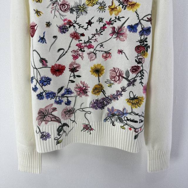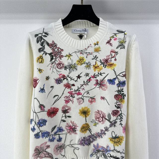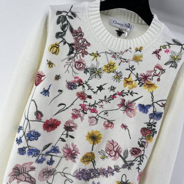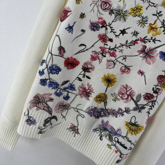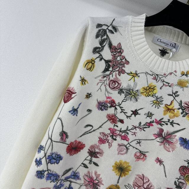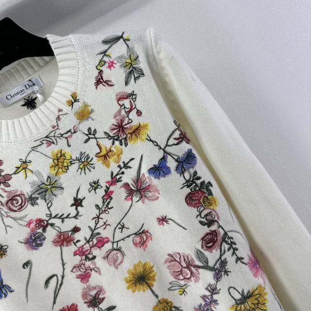 Dior*New Arrival Details DDD Newest Autumn/Winter Collection: Floral Long-Sleeved Top with Heavy Embroidery! Adorned with vibrant floral patterns, the hem features embroidered Dior logos for a minimalist yet sophisticated look! Stylish yet fresh! Versatile and fashionable! DDD 2 Colors, 3 Sizes (Small, Medium) DDD