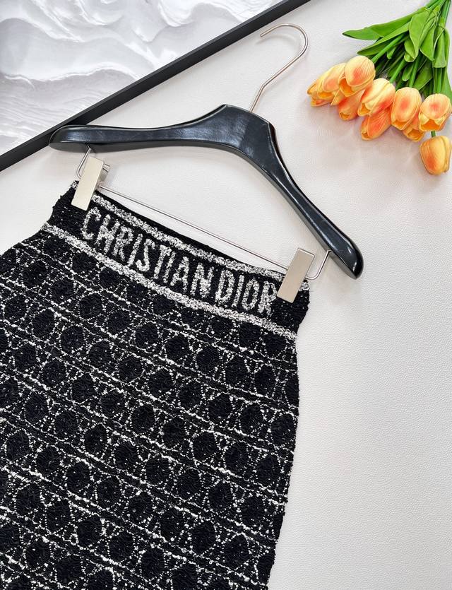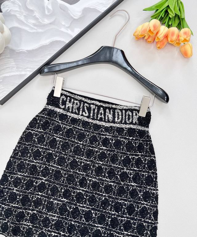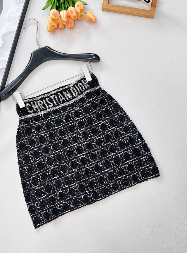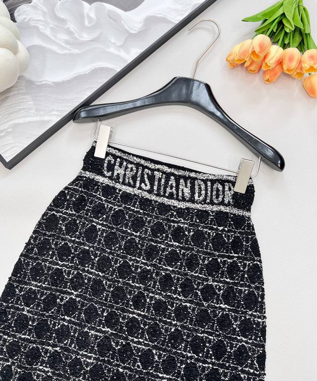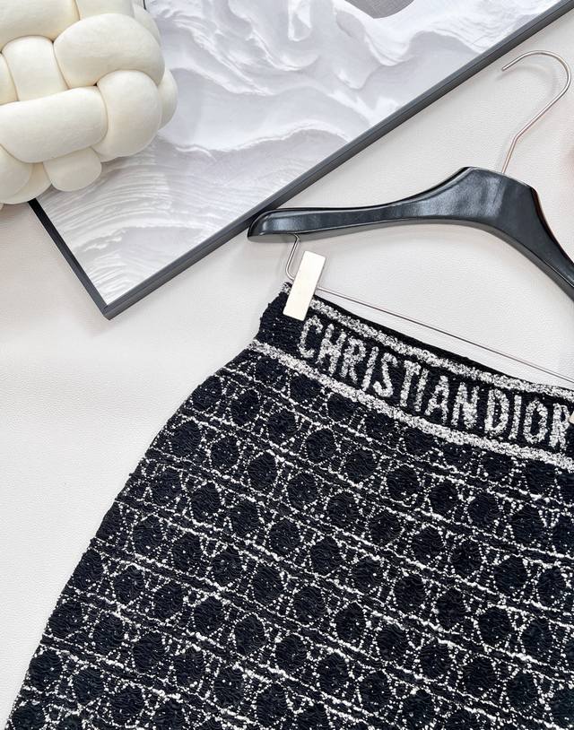 Dior's cannage-patterned, heavy-worked, chunky knit jacket and skirt set. The ca
