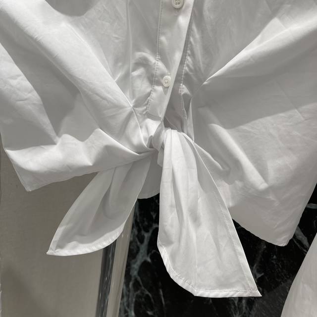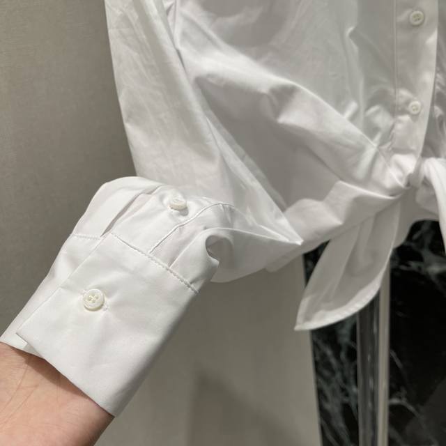 D's new summer 25 cropped shirt with laces. This limited edition white shirt from Dioriviera features minimalist pleated laces that accentuate the waist and enhance the look. This classic cropped style is perfect for everyone! A stylish and cool outfit! One color in stock (Sml