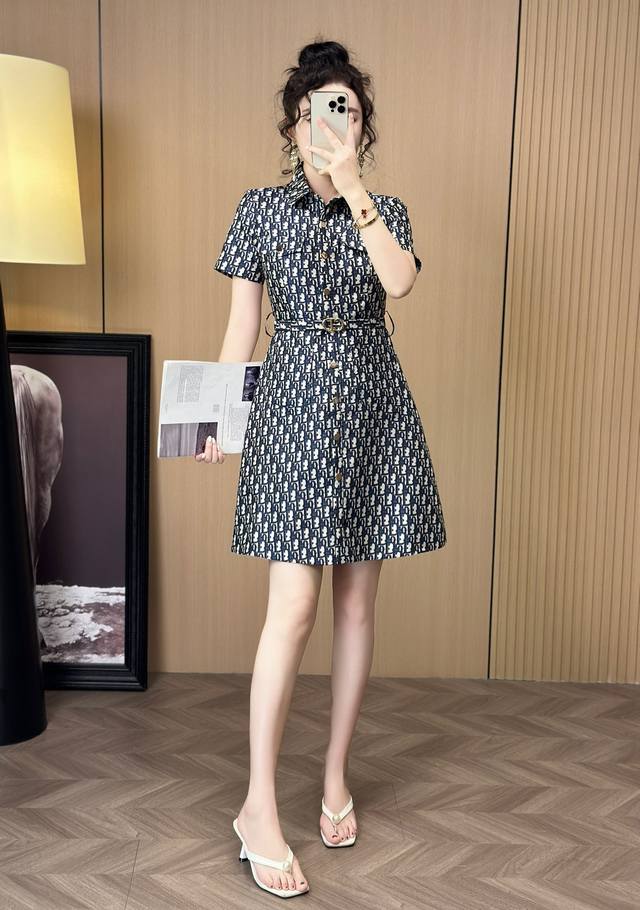 Dior same style dress same style custom jacquard fabric waist version with belt atmospheric version simple atmospheric style high quality has been reordered more than 1000 pieces of style main style strongly recommended