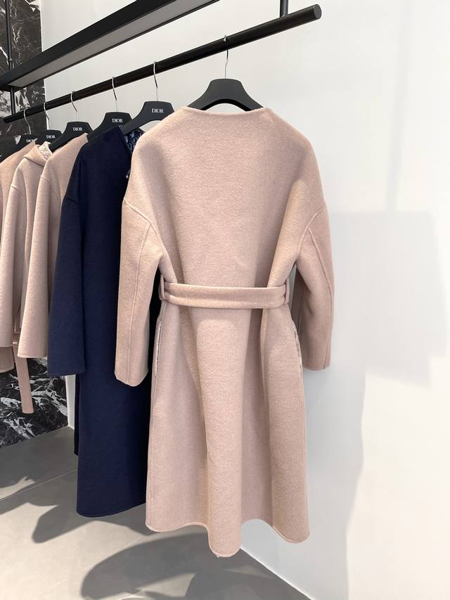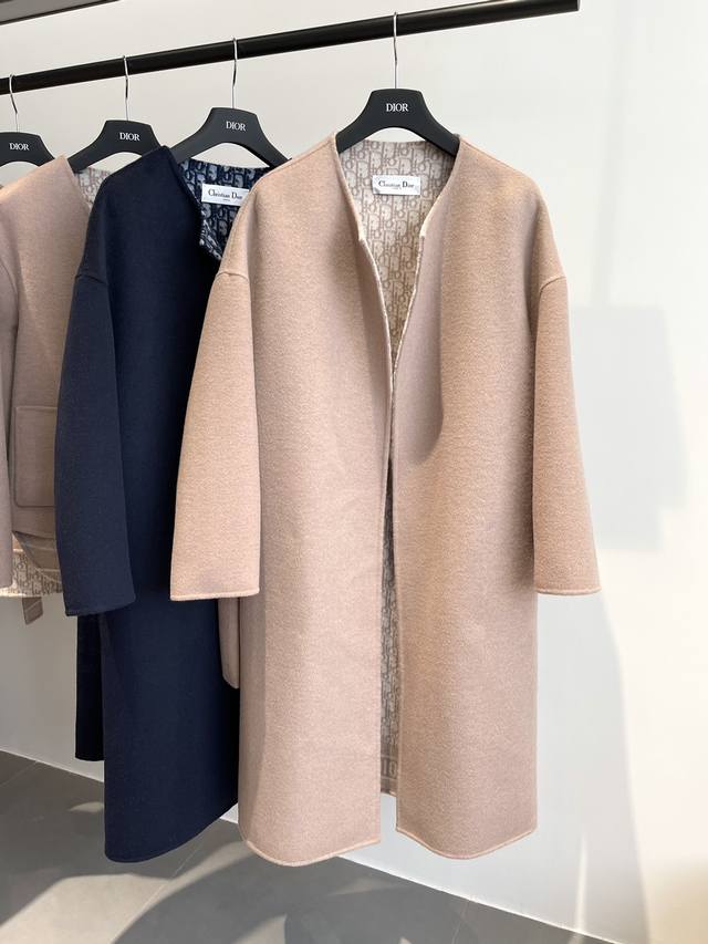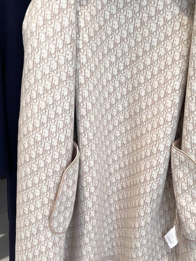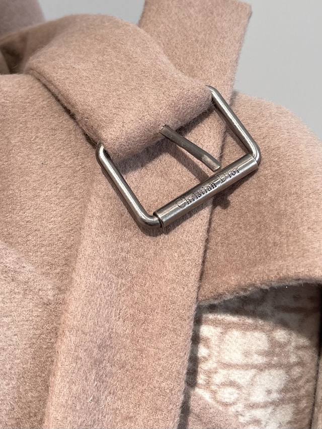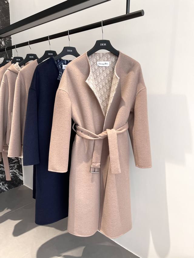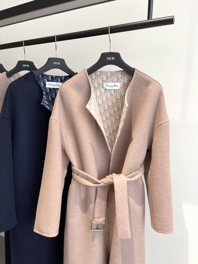 This coat is exquisite and elegant. It is carefully crafted from a double-faced lightweight wool and mulberry silk blend fabric, decorated with a decorative belt to highlight the waist curve. It has two large pockets and is full of modern style. The inside is decorated with the "Christian Dior" logo and Oblique print, which is a classic pattern launched by Dior in 1967. It can be paired with various styles to add a refined temperament.