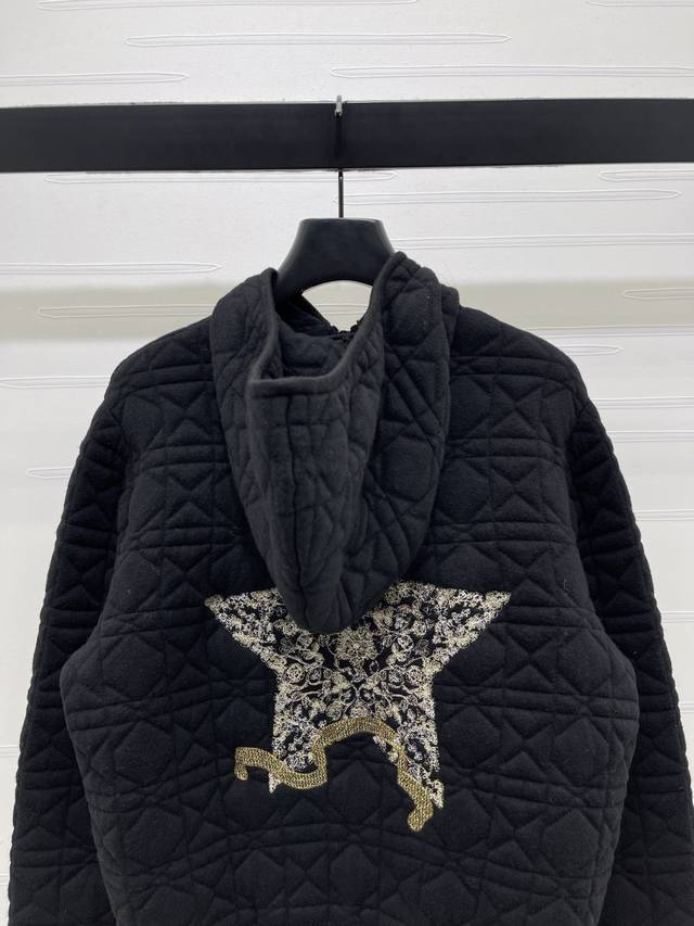 New Arrival! High-Quality Original Dior* 2025 Autumn/Winter Collection! New Heavy-Duty Hooded Jacket with Diamond Pattern and Five-Pointed Star Embroidery on the Back! This Dior jacket with diamond pattern and five-pointed star embroidery on the back perfectly captures the essence of "street chic + luxury brand quality." The fabric is crisp and textured, and the diamond pattern and five-pointed star embroidery on the back are exquisitely detailed. The hooded design is casual and youthful! Available in 2 colors! Sizes SM-L3! High-quality bulk order A706B590C DDD