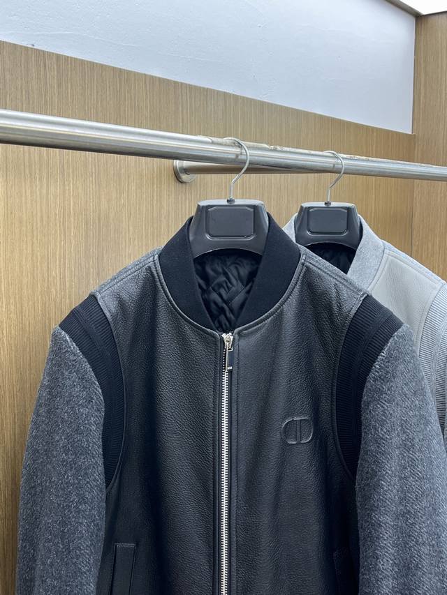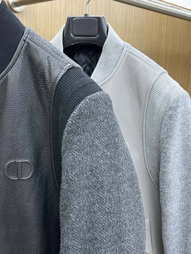 Autumn/Winter Cd Fw New Fall/Winter Cowhide and Wool Baseball Jacket, a New Defi
