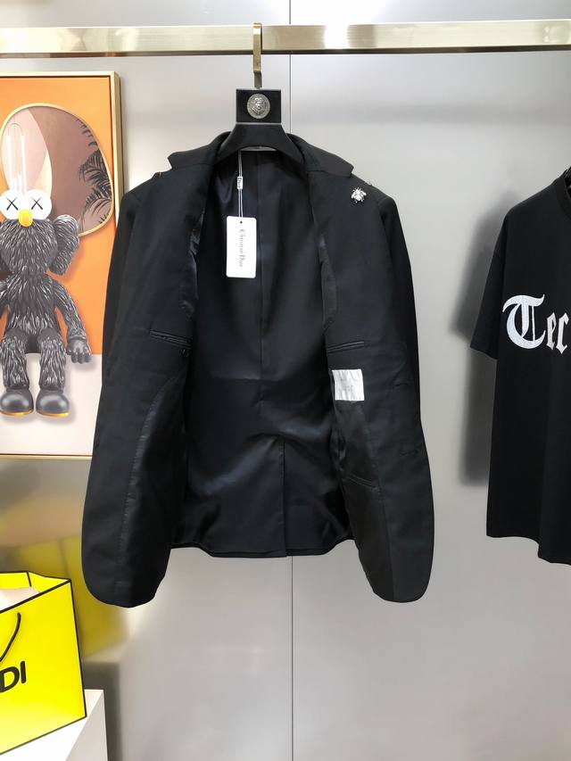 Complete set of jacket and trousers D*Or Dior new original men's business casual suit. The jacket and trousers can be disassembled and sold simultaneously on the official website. High-end customization, fashionable and versatile popular item. The bee logo brooch on the collar is designed with original imported 100% polyester fiber and innovative memory fabric. Master-level tailoring! Soft and delicate to the touch, comfortable to wear. Customers can provide original imported engraved hardware accessories, smooth lines, exquisite craftsmanship, and great style. It is very fashionable and handsome when matched with any style. Highly recommended! Counter size: 46-58 = S-4Xl. The largest size can wear about 200 pounds. Please indicate your height and weight when placing an order. It will be shipped the next day. Black