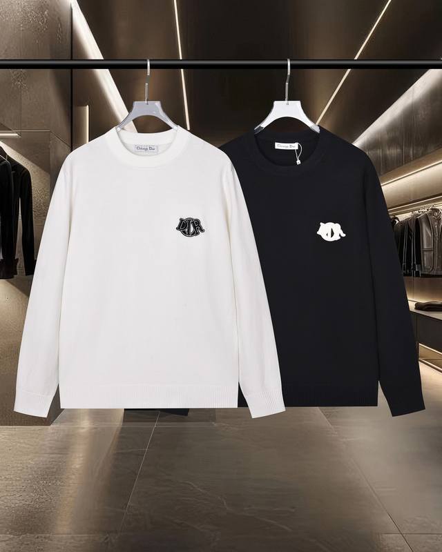Confidently recommend this item, with ample stock available. This Dior 25Fw classic casual knitted pullover sweater features a logo badge on the chest. Made from the official 2025Fw brand new, original fabric, the same style as the official sweater. This high-end sweater is custom-made from imported wool fabric. This custom-made sweater is breathable and comfortable, meticulously crafted with impeccable detailing. It features custom-engraved buttons with logos, and all three labels are included. This brand-inspired design reflects high quality. It feels delicate and soft! The casual cut creates a stunning upper shape. Available in black and white. Sizes: M-Xxxl.