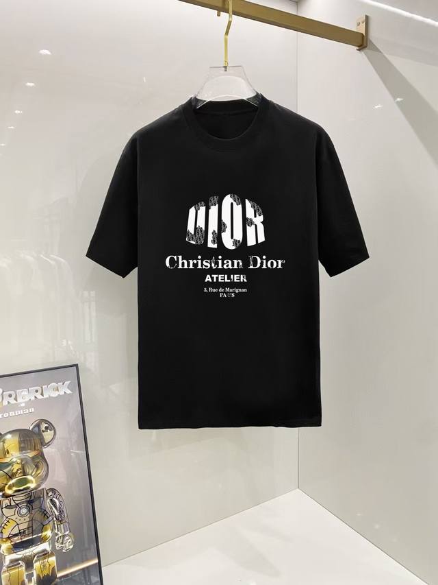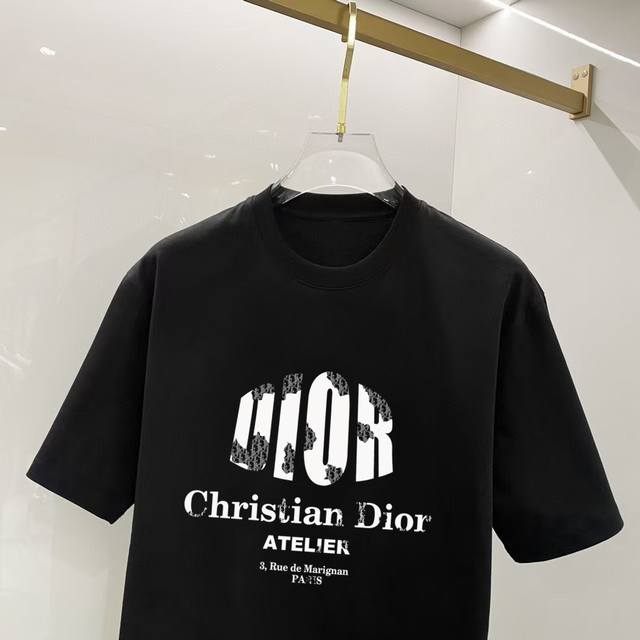 Dior# 2025 Spring/Summer new release, the latest short-sleeved round neck T-shirt, high-end custom design, avant-garde fashion! Brand logo, heavy craftsmanship design, high-end custom 250g Xinjiang long-staple cotton fabric. Soft to the touch and comfortable to wear. Counter-level exquisite sewing and fine workmanship. The upper body effect is invincible and handsome! A must-have item for stylish men! Color: Black. White!