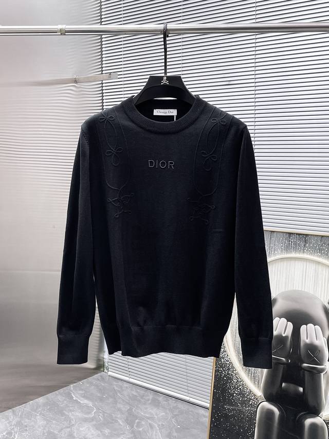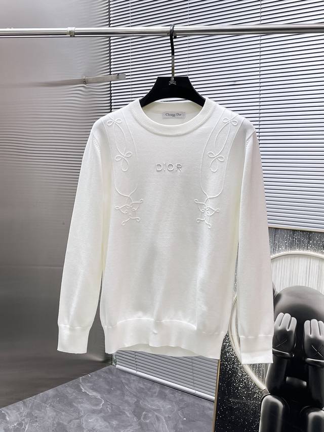 Dior 2025Ss New Crew Neck Long Sleeve Sweater, Wool Sweater Base Layer, High-End Version! Custom-made fabric from the boutique, highly breathable and comfortable, impeccable details, brand elements and design concepts, reflecting high quality. Delicate and soft to the touch! Presents a casual cut, the fit is superb! Sizes: M-XL DDD