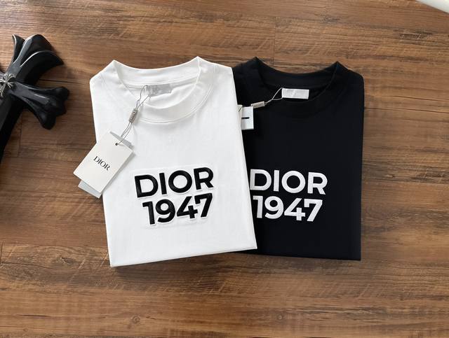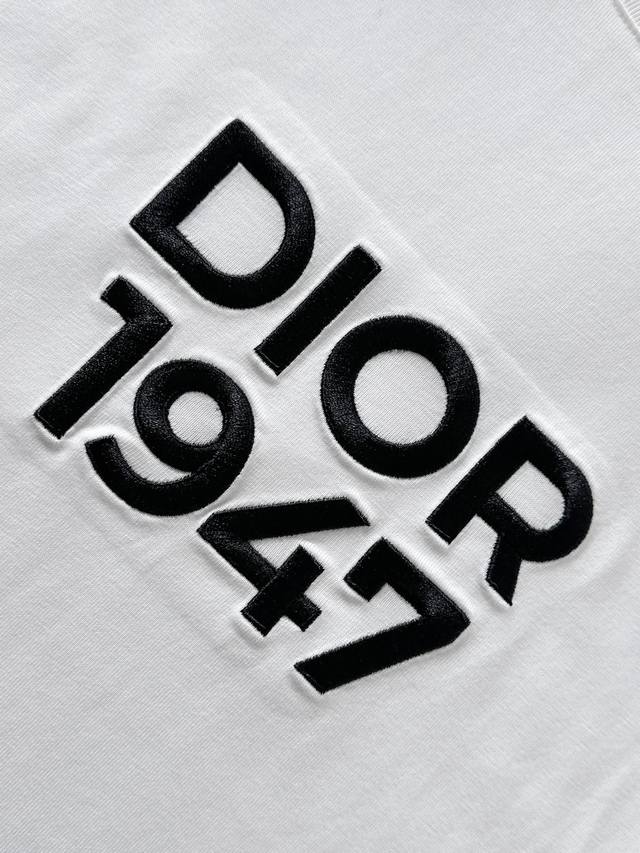 Dior 2026 Spring/Summer New Cotton Crew Neck Short Sleeve T-Shirt with Heavy Embroidery on the Chest, Top-Quality Pure Cotton Fabric, Custom Standard Fit, Available in Black and White, Unisex. Sizes: S, M, L, XL, XL.