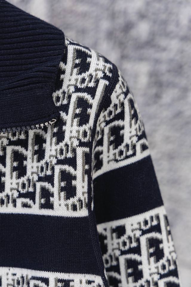 Made from premium cashmere yarn, this new autumn/winter Oblique jacquard knit cashmere sweater is reversible and crafted from premium cashmere. Through a meticulous weaving process, it offers a soft and comfortable touch and excellent warmth. The iconic Oblique jacquard pattern is perfectly rendered through precision knitting, allowing it to be worn on both sides for a variety of styles. The round neckline is simple and elegant, perfect for a variety of occasions. The exquisite knitting ensures that the garment retains its shape and maintains a long-lasting crispness. The reversible design concept embodies Dior's perfect balance of practicality and fashion. Each sweater undergoes rigorous quality inspection to ensure that it meets the brand's consistent high standards. This knitted piece combines warmth and fashion, making it a sophisticated addition to your autumn/winter wardrobe.