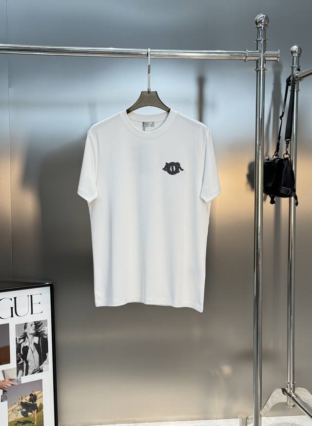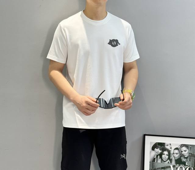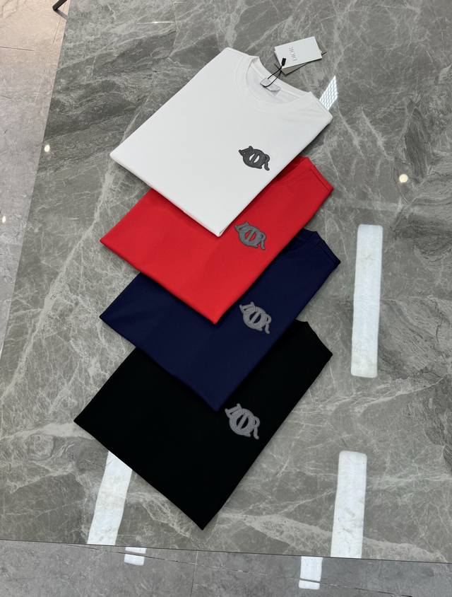 Dior 25S Modal T-shirt. Recommended for basic styles! A refreshed and versatile essential, produced by a trading company! Made from premium organic 300g modal cotton, it's breathable, comfortable, and durable. The classic Dior logo is embroidered on the chest in three-dimensional detail, showcasing the new micro-logo design. The fitted silhouette showcases a man's urban style. Colors: Black, White, Dark Blue, and Bright Red. Sizes: M-3X1 for a slim fit! S and 4X1 available for customization. For those weighing 175 or 140 pounds, L is recommended.