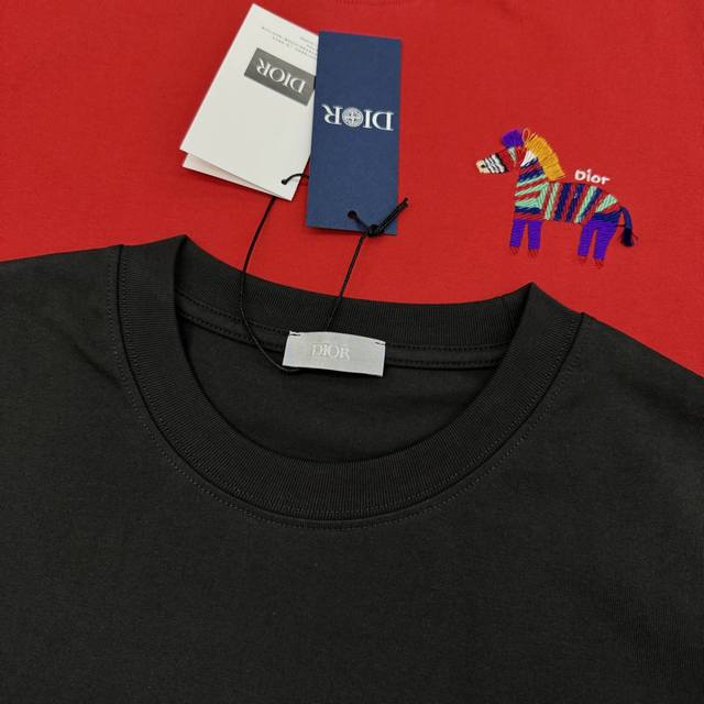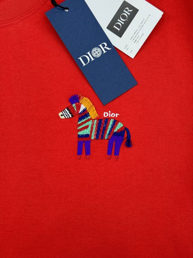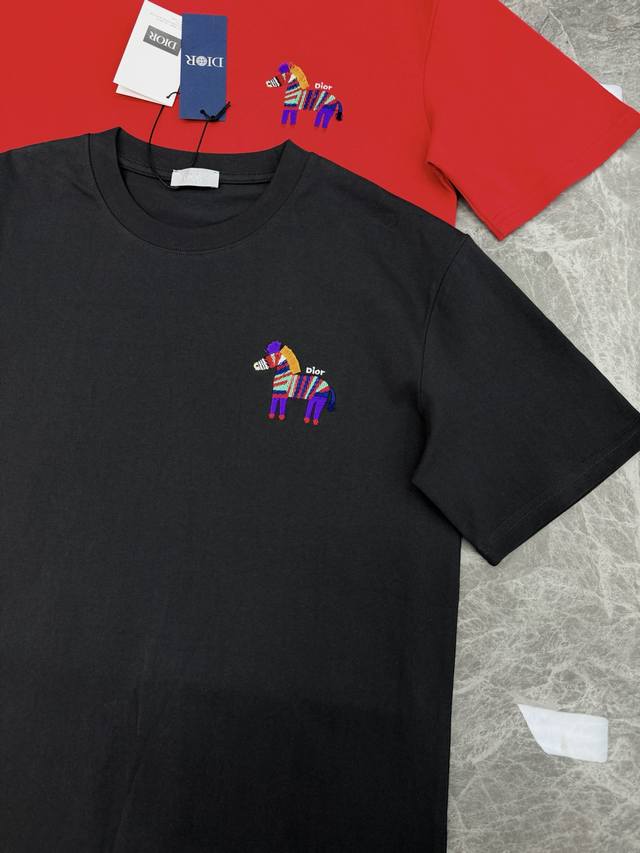 Dior 26S New Rainbow Zebra Embroidered T-Shirt. Unisex basic style recommended. The rainbow zebra embroidery on the chest is eye-catching, full of childlike fun and artistic flair. Loose fit, comfortable and breathable. The zebra pattern is a classic Dior element, symbolizing diversity and vitality, a must-have for spring and summer. It looks great with jeans or casual pants, easily creating a stylish everyday look. All tags are included! European sizes: S-XL. For someone 175cm tall and weighing 145kg, M is recommended.