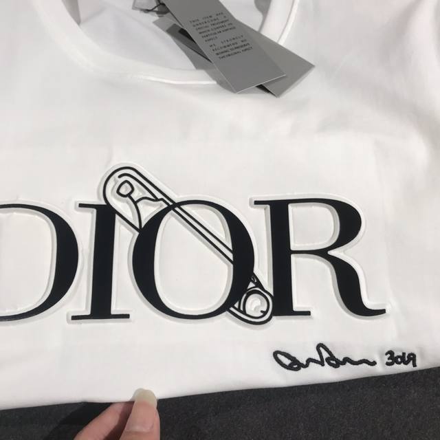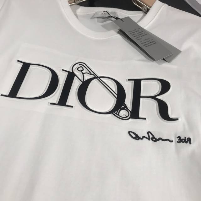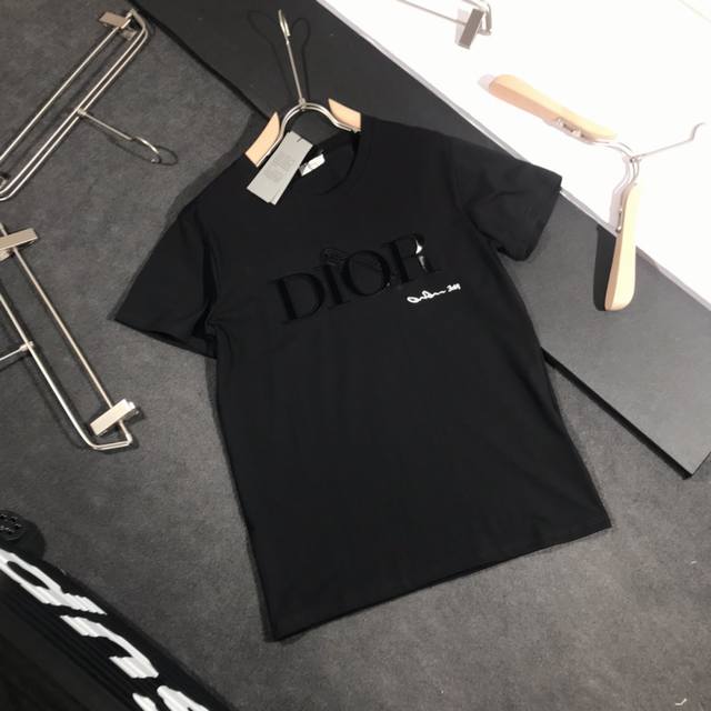 Dior 3D embossed leather logo design 20Ss G network synced unisex short-sleeved