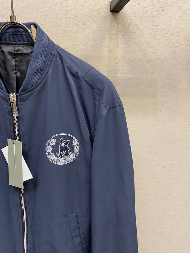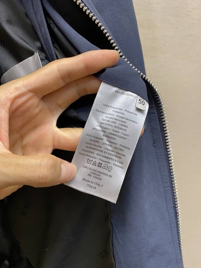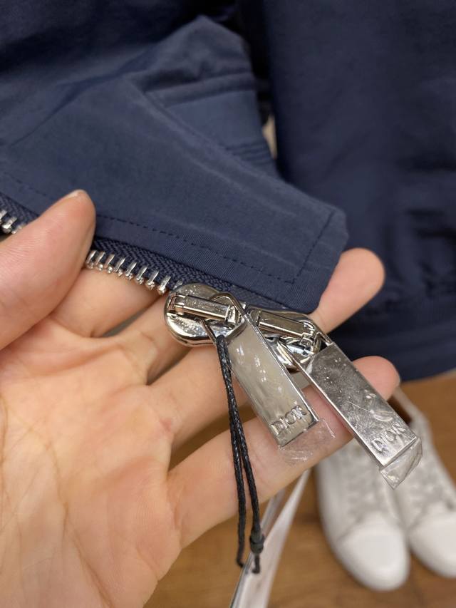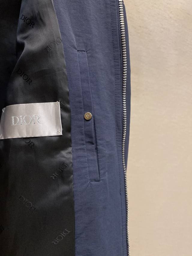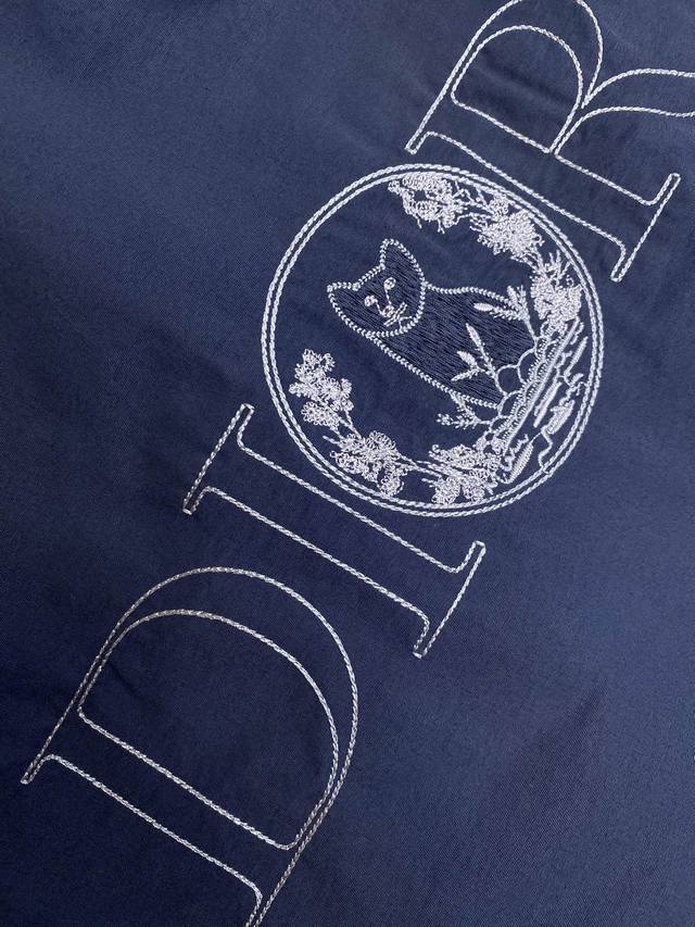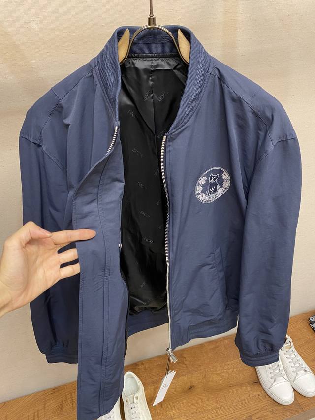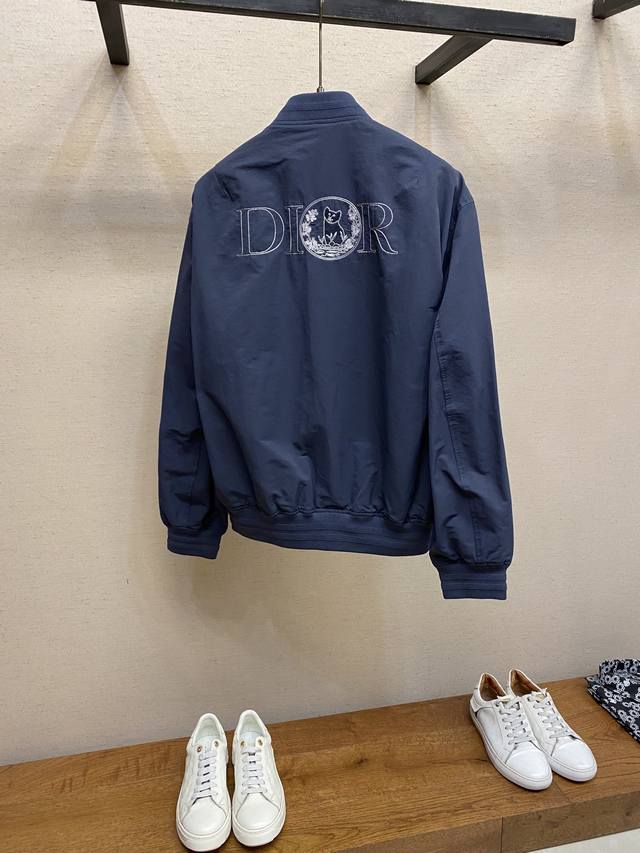 Dior, a bomber jacket featuring the Dio For My Real Friends logo from the Dio And Hylton Nel collaboration. Crafted from a navy cotton blend, it features a comfortable fit with ribbed trims and welt pockets, and the collaboration's logo is embroidered on the front and back. Perfect for a variety of everyday looks. Sizes: 46-52