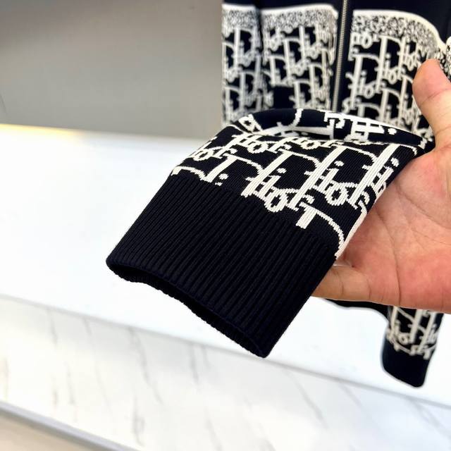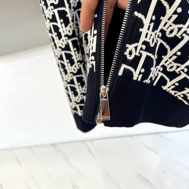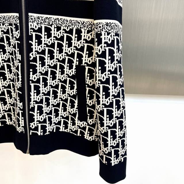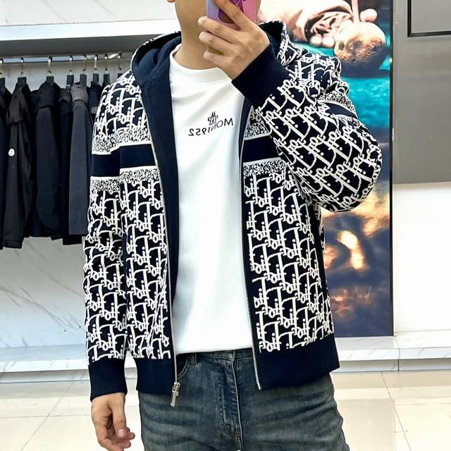 Dior, a quilted hooded jacket, continues the winter season with Oblique print, and the classic Oblique pattern leaps into the winter night. Dior uses jacquard craftsmanship to weave the black and white letter totem onto the jacket. The quilted lining is lightweight and locks in warmth, and the nylon fabric creates a windproof barrier. The hooded design features a full zipper closure, while ribbed cuffs and hem precisely outline the neat silhouette. Dual side zipper pockets conceal a practical aesthetic. A silver-gray metallic background interwoven with warm light strips highlights the deep rhythm of the oblique pattern.