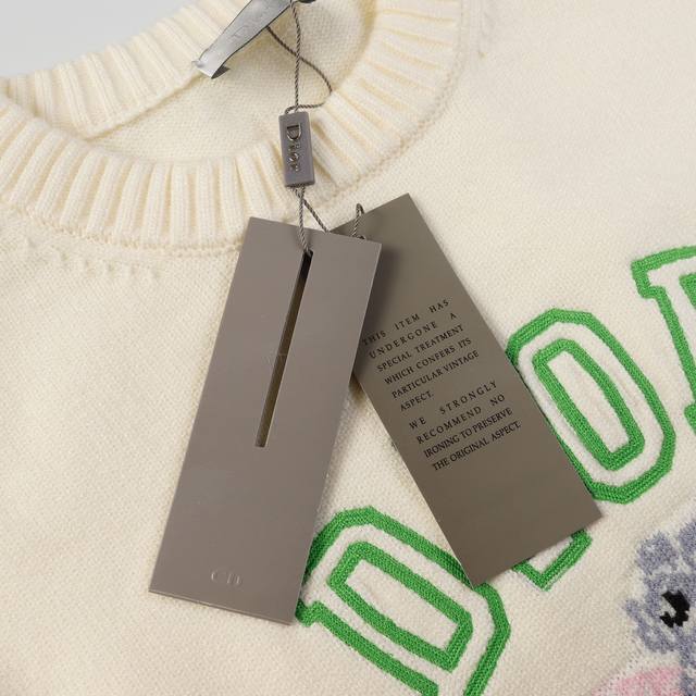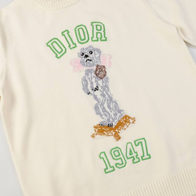 Dior Animal Print Jacquard Crewneck Casual Long-Sleeved Sweater Beige
