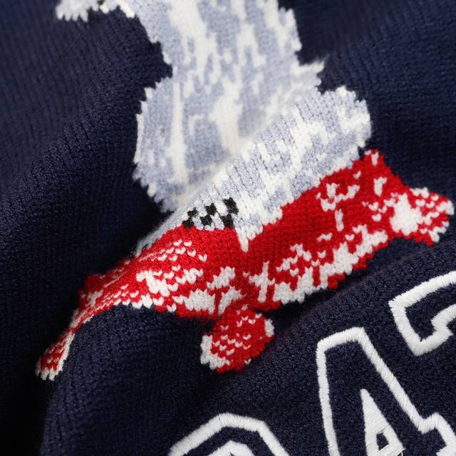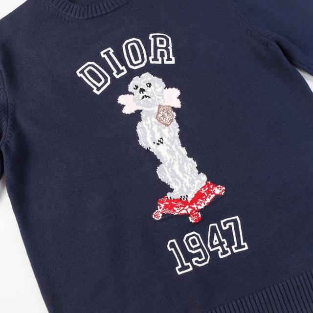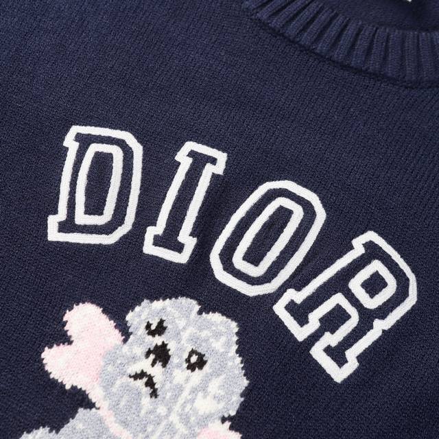 Dior Animal Print Jacquard Crewneck Casual Long-Sleeved Sweater in Navy